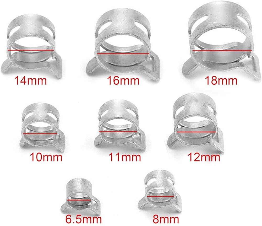 • [MULTI SIZE OPTIONS] This comprehensive set includes clamps for hoses with outer diameters of 6.5mm 8mm 10mm 11mm 12mm 14mm 16mm and 18mm covering most standard sizes. The variety ensures you always have the right clamp for your specific project or repair needs.