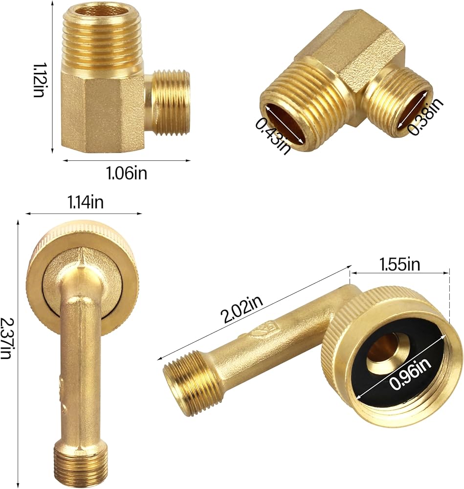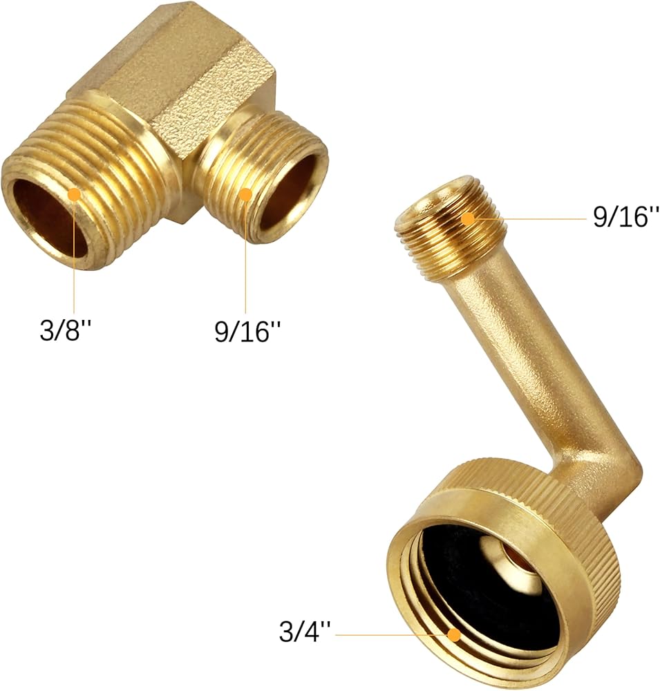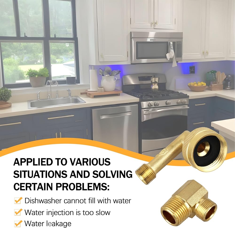 كوع دوار لغسالة الأطباق من النحاس - محول خرطوم 3/4 بوصة إلى 3/8 بوصة، يناسب معظم خطوط إمداد المياه لغسالة الأطباق مع وصلة 1 × 90 درجة | 1 مجموعة