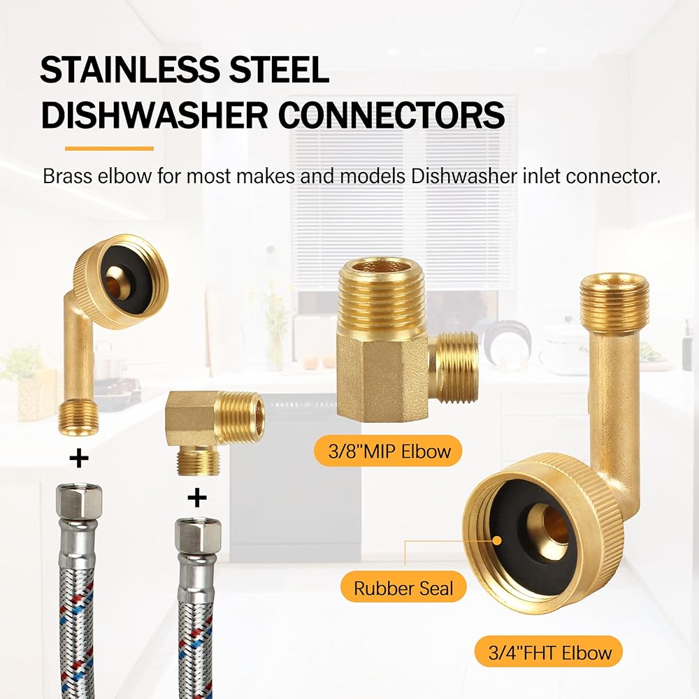 • محول صنبور غسالة الأطباق المحمول متوافق عالميًا - حجم 3/4 بوصة إلى 3/8 بوصة يناسب معظم خطوط إمداد مياه غسالة الأطباق القياسية، متوافق مع أفضل العلامات التجارية مثل Bosch وWirlpool وKitchenAid والمزيد.