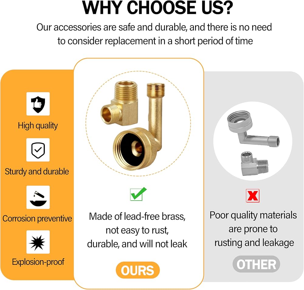 • محول صنبور غسالة الأطباق المحمول - هيكل نحاسي ممتاز - مادة نحاسية صلبة تقاوم التآكل والصدأ والتسربات، وتتفوق على المحولات البلاستيكية من أجل موثوقية طويلة الأمد في خطوط إمداد مياه غسالة الأطباق.