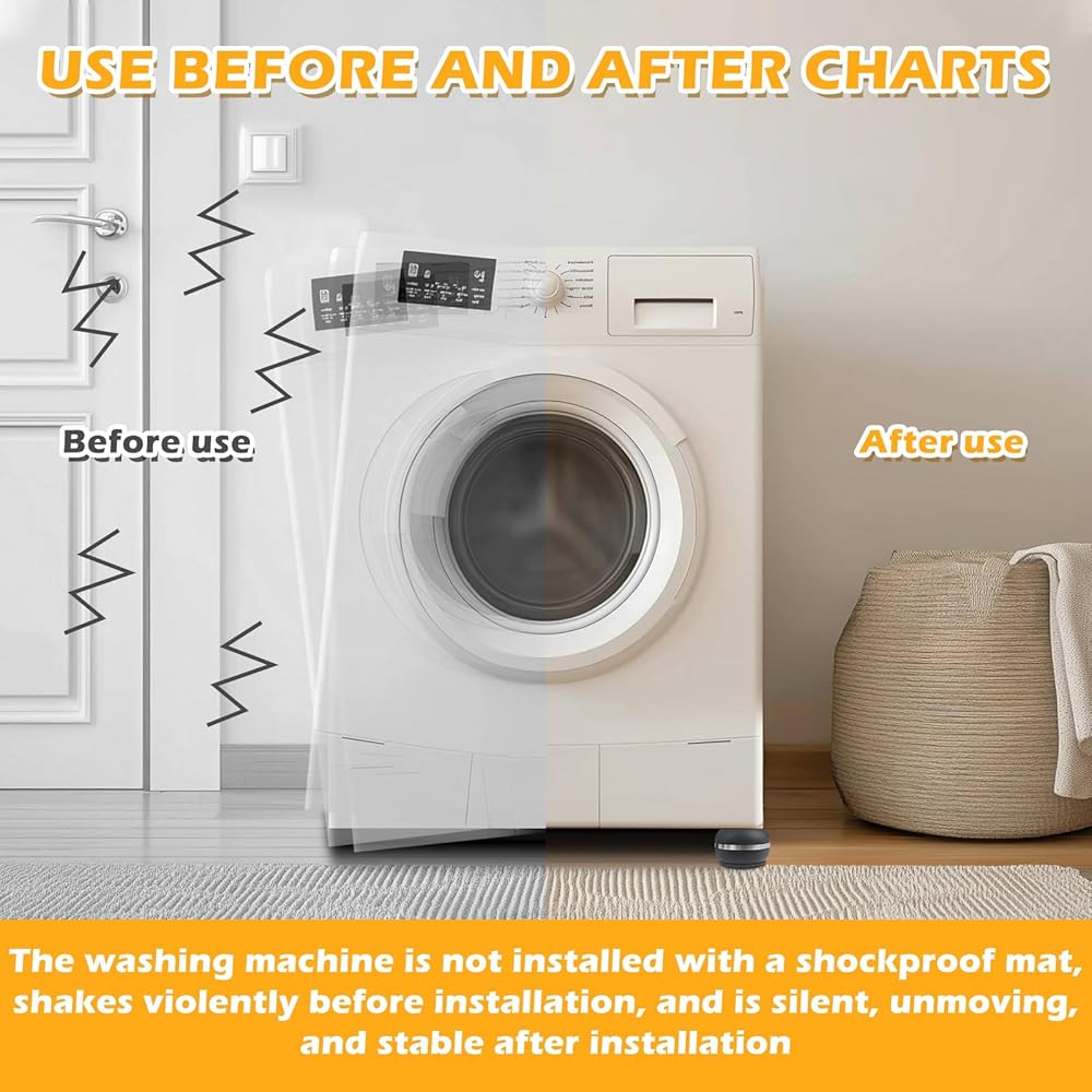 • ✅ 30-Second Tool-Free Installation - Just tilt your washer, slide the washer anti vibration pads under each foot, and release—no adhesives or DIY skills needed!