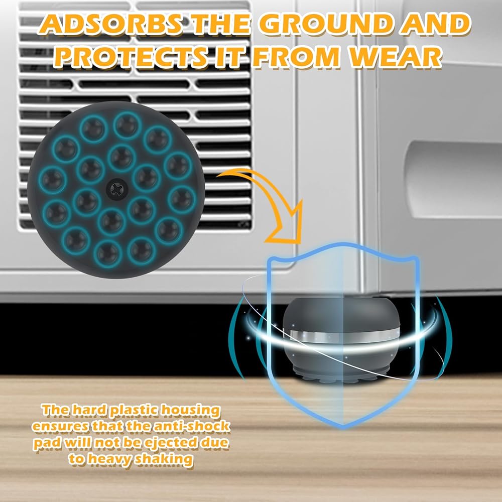 • ✅ Unmatched Grip with 18 Suction Cups - Unlike flimsy anti vibration mats, our pads feature 18 heavy-duty latex suction cups that lock onto floors like glue—preventing washer "walking" on tile, wood, or laminate. The rubber foot design combines a washer stand base stability with deep-grip traction, ensuring your machine stays put for years