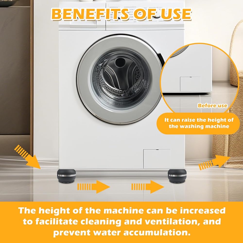 • ✅ Universal Fit for Most Washers & Dryers - Designed for washer and dryer pedestals (fits feet up to 1.57in diameter), these anti-vibration pads are suitable for most standard washing machine feet. The 2 inches lift improves drainage access. Also ideal as furniture leg stabilizers!