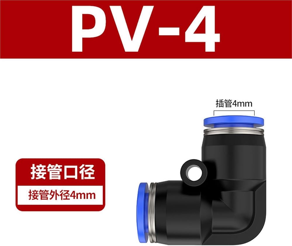 خرطوم هواء هوائي موصل سريع PV4/6/8/10 الزاوية اليمنى 90 درجة مفصل الكوع البلاستيكي 1 قطعة (PV-4)