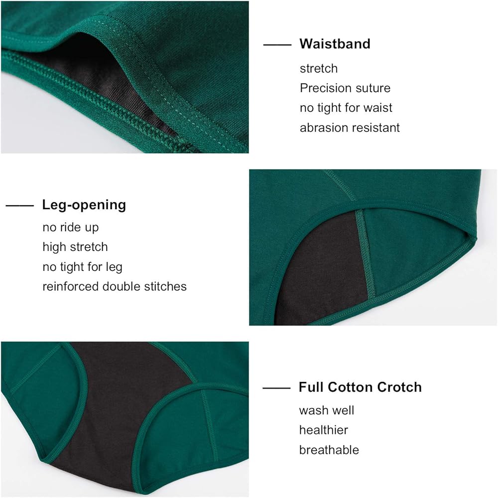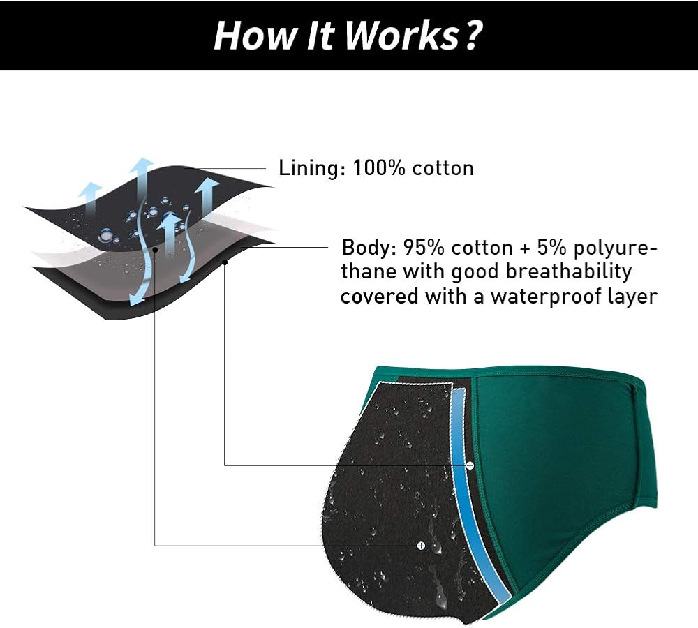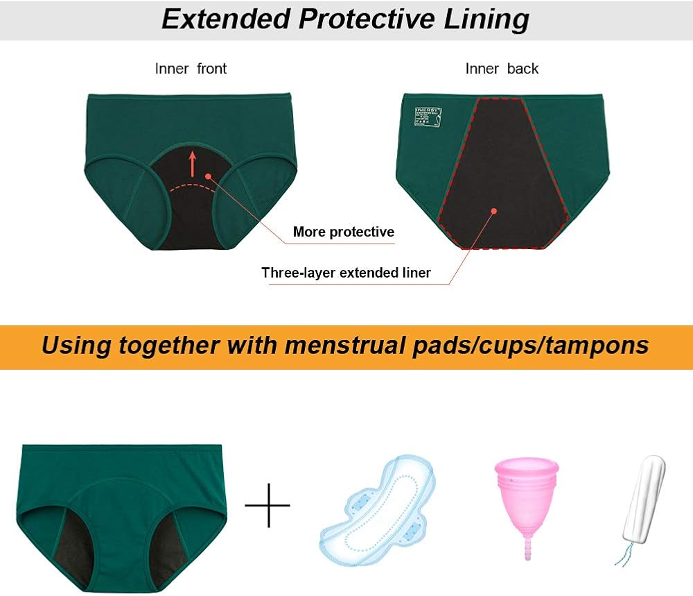 التصميم: تصميم بطانات من 3 طبقات (بطانة قابلة للامتصاص، وبطانة مقاومة للماء، وبطانة خفيفة). حزام خصر مرن وتصميم بدون علامات صديق لبشرتك. خلال فترة الدورة الشهرية، يمكنك استخدام السدادات القطنية، وبطانات الدورة الشهرية، وفوط الدورة الشهرية، والأكواب التي تحمي من الفائض وتكون فعالة في الامتصاص.