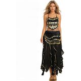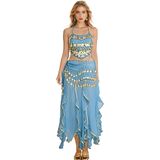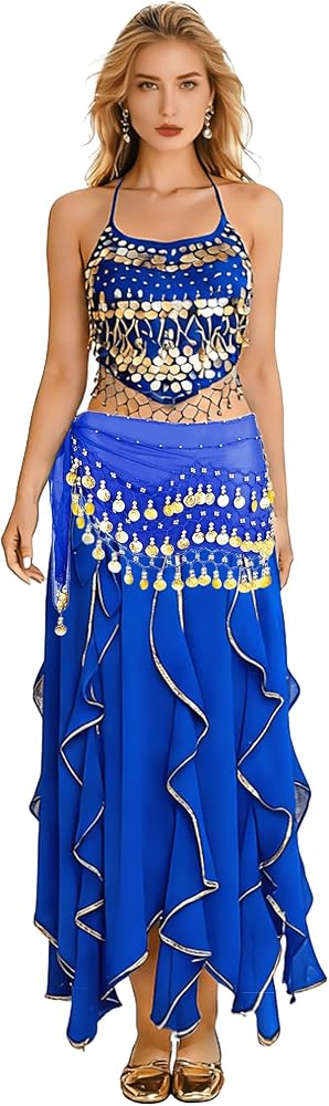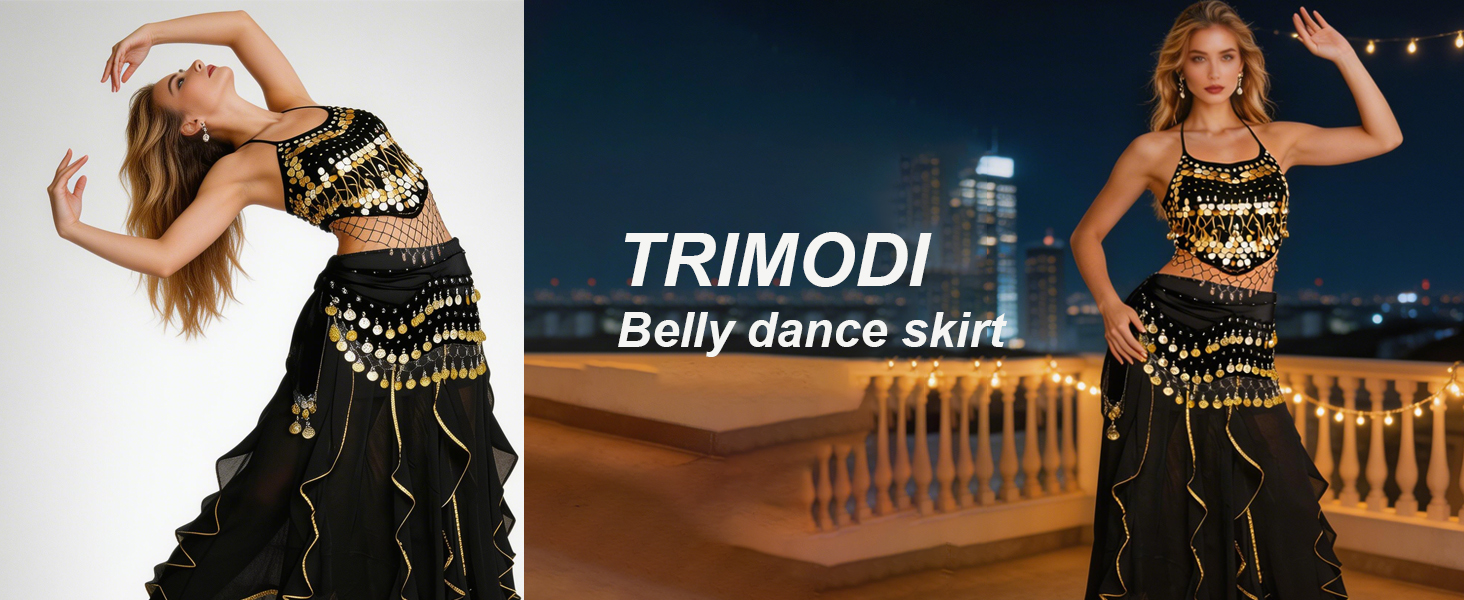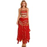 ♥ تصميم لافت للنظر: تنورة رقص بطن مع 128 قطعة معدنية ذهبية لامعة وخرز ذهبي ستصدر صوتًا جميلاً عند التحرك، مما يتيح لك أن تصبحي النجمة الأكثر إبهارًا في الحفلة. أضف الإثارة إلى تمرينات الزومبا الخاصة بك.