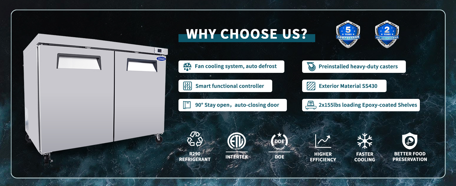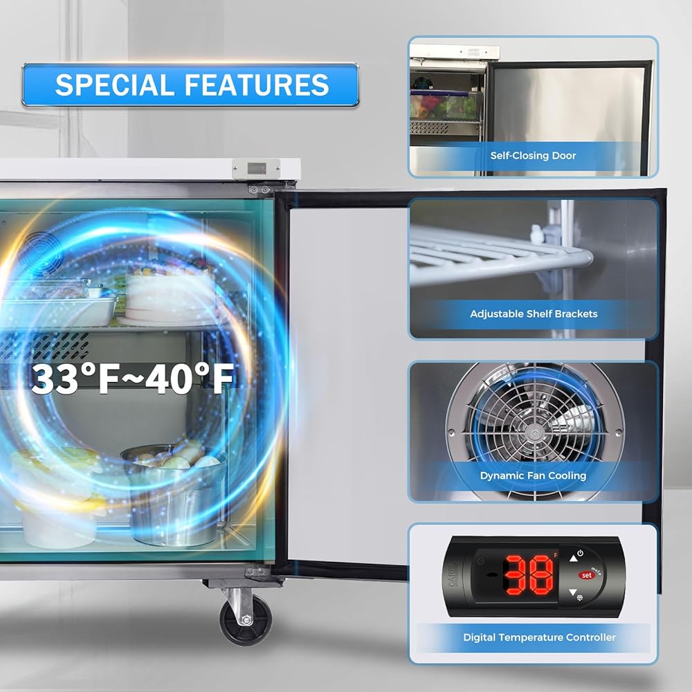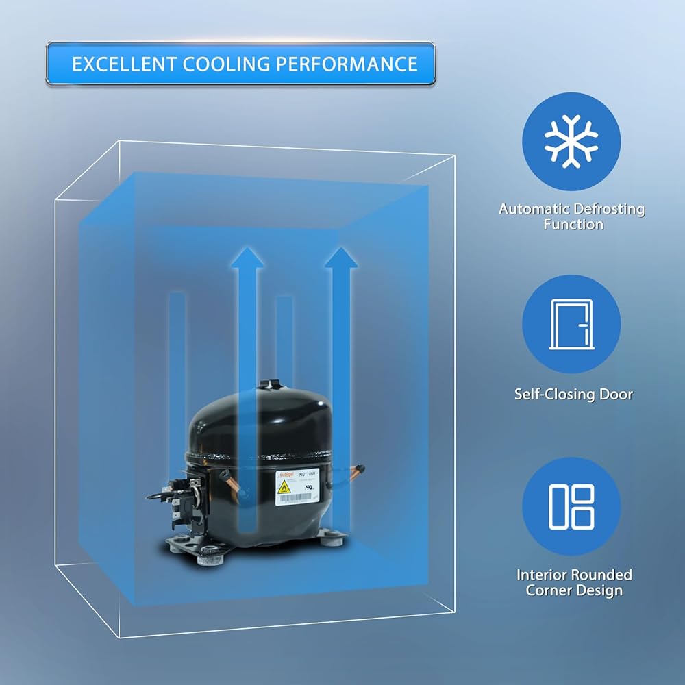 التحكم في درجة الحرارة والأداء: 33-40 درجة فهرنهايت. يضمن التحكم الذكي في درجة الحرارة التبريد السريع والنضارة، وعرض درجة الحرارة LED، وإزالة الجليد تلقائيًا على فترات 6 ساعات، وقائمة مزدوجة ETL وDOE.