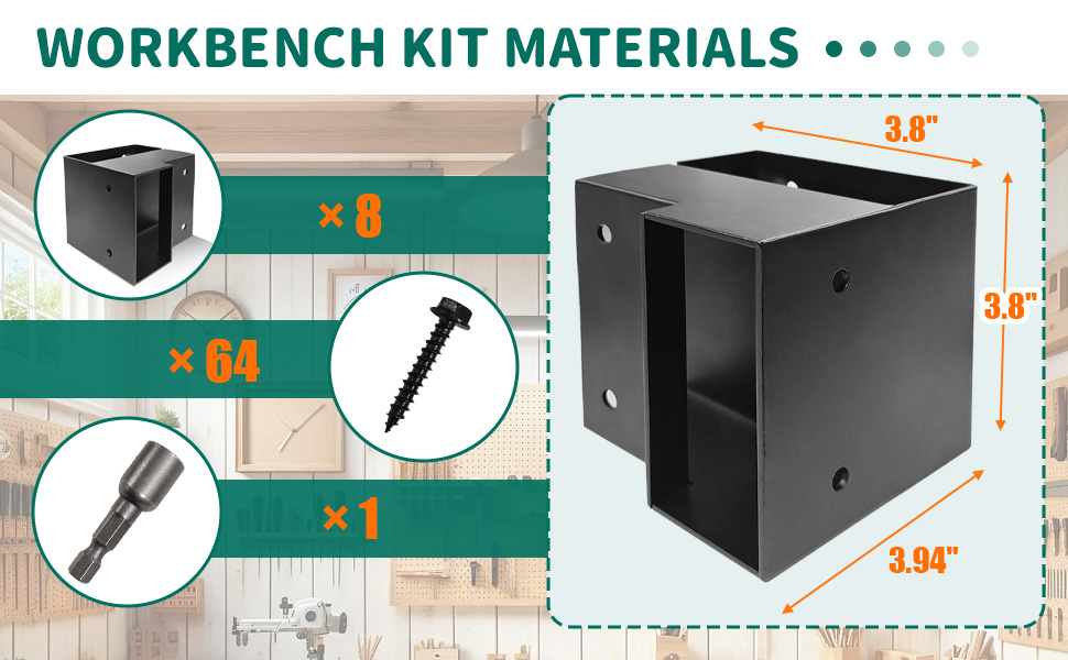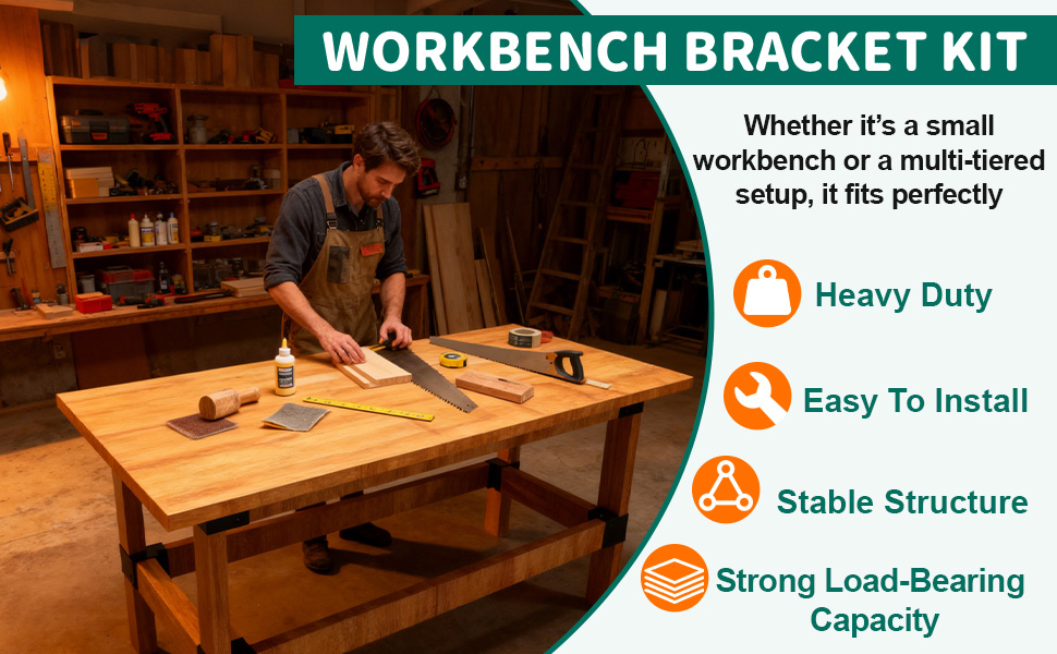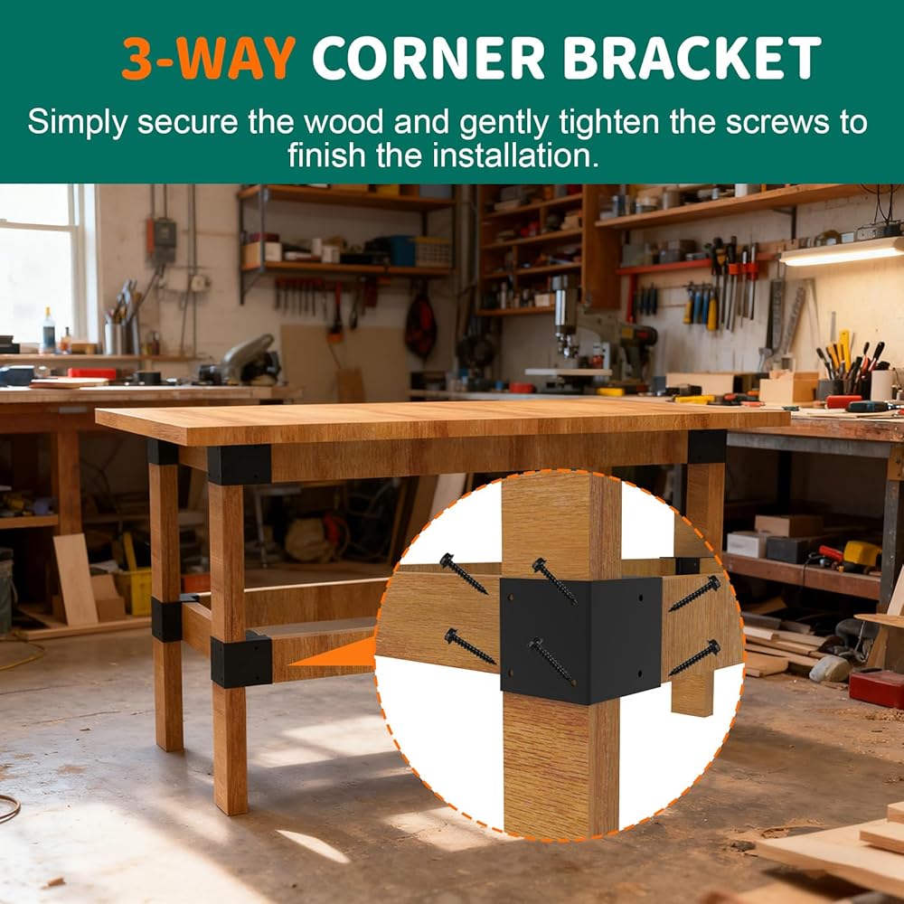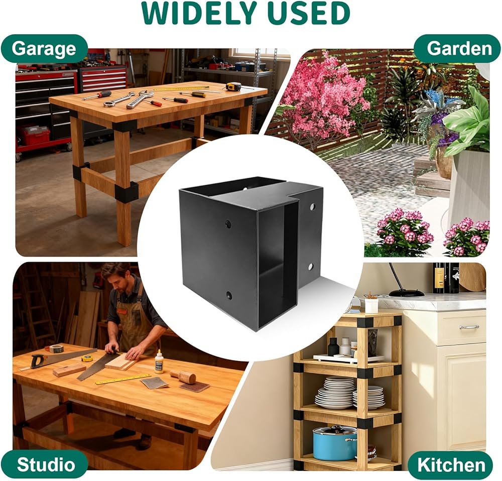 • سهلة التركيب مع الثقوب المثقوبة مسبقًا، تتيح لك المجموعة إدخال الخشب 2×4 وشد البراغي بسرعة - لا حاجة لأي أدوات معقدة. إنه يوفر الوقت والجهد لعشاق الأعمال اليدوية، مما يجعل من السهل بناء أرفف المرآب أو حوامل النباتات أو مقاعد العمل الصغيرة في المنزل.