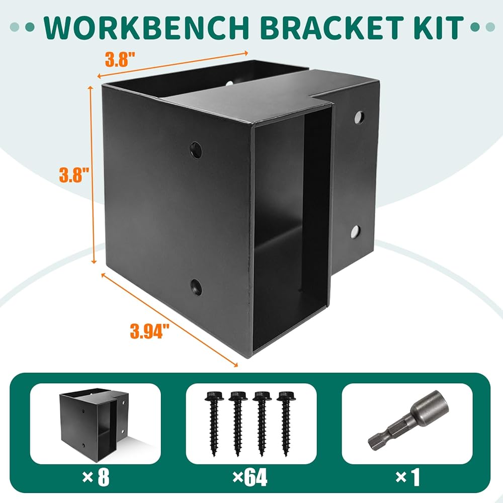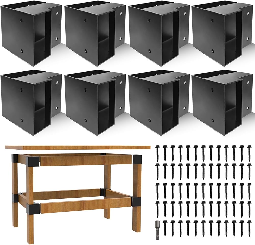 مجموعات دعامات زوايا منضدة العمل، دعامات زوايا فولاذية شديدة التحمل 2x4 لطاولة العمل، منضدة عمل مخصصة بنفسك، أرفف جراج (أسود-8 عبوات)