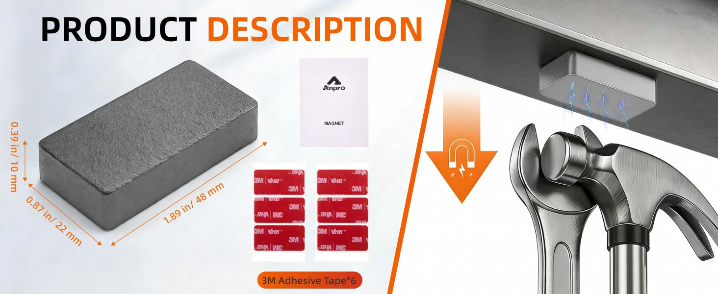المجموعة الكاملة والمواصفات القياسية: تتضمن 12 قطعة مغناطيس مستطيل 48*22*10 مم، 1 دليل تعليمات، 1 صندوق ألوان، 12 قطعة لاصق 0.6 مم 3M و2 كيس فقاعات، معبأة جيدًا، ملحقات كاملة، جاهزة للاستخدام خارج الصندوق.