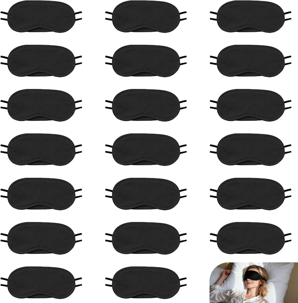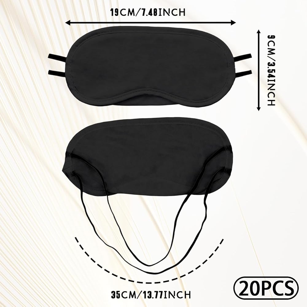 20-Pack Eye Masks Bulk for Group Scenarios: 20pcs black blindfold masks — The sleep mask is perfect for party games (pin the tail, guess the object), team building activities, family travel, or sleepovers; no last-minute shortages for 8+ people. suitable for men, women, and kids (no gender or age restrictions).