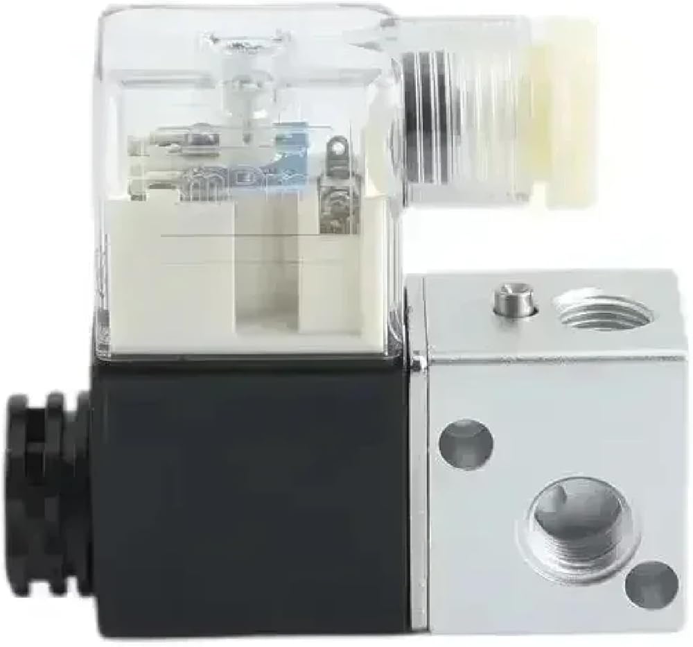 This professional-grade pneumatic solenoid valve is engineered for precise fluid control in industrial applications. Operating on DC 24V with 6.0W power consumption, this 2-position, 2-way valve offers reliable performance within a voltage range of DC21.4V-26.4V. The valve features an IP65 rating, ensuring excellent protection against dust and water jets from any direction, making it suitable for challenging industrial environments. The compact design includes a clear housing for visual operation confirmation and a robust aluminum body for durability. Perfect for pneumatic control systems, automation equipment, and fluid control applications, this valve delivers consistent switching performance. The integrated mounting options and standard port connections make installation straightforward. Its 100% ED (Duty Cycle) rating allows for continuous operation in demanding industrial settings. Whether controlling air, neutral gases, or compatible fluids, this solenoid valve provides reliable, long-term service in your pneumatic system.