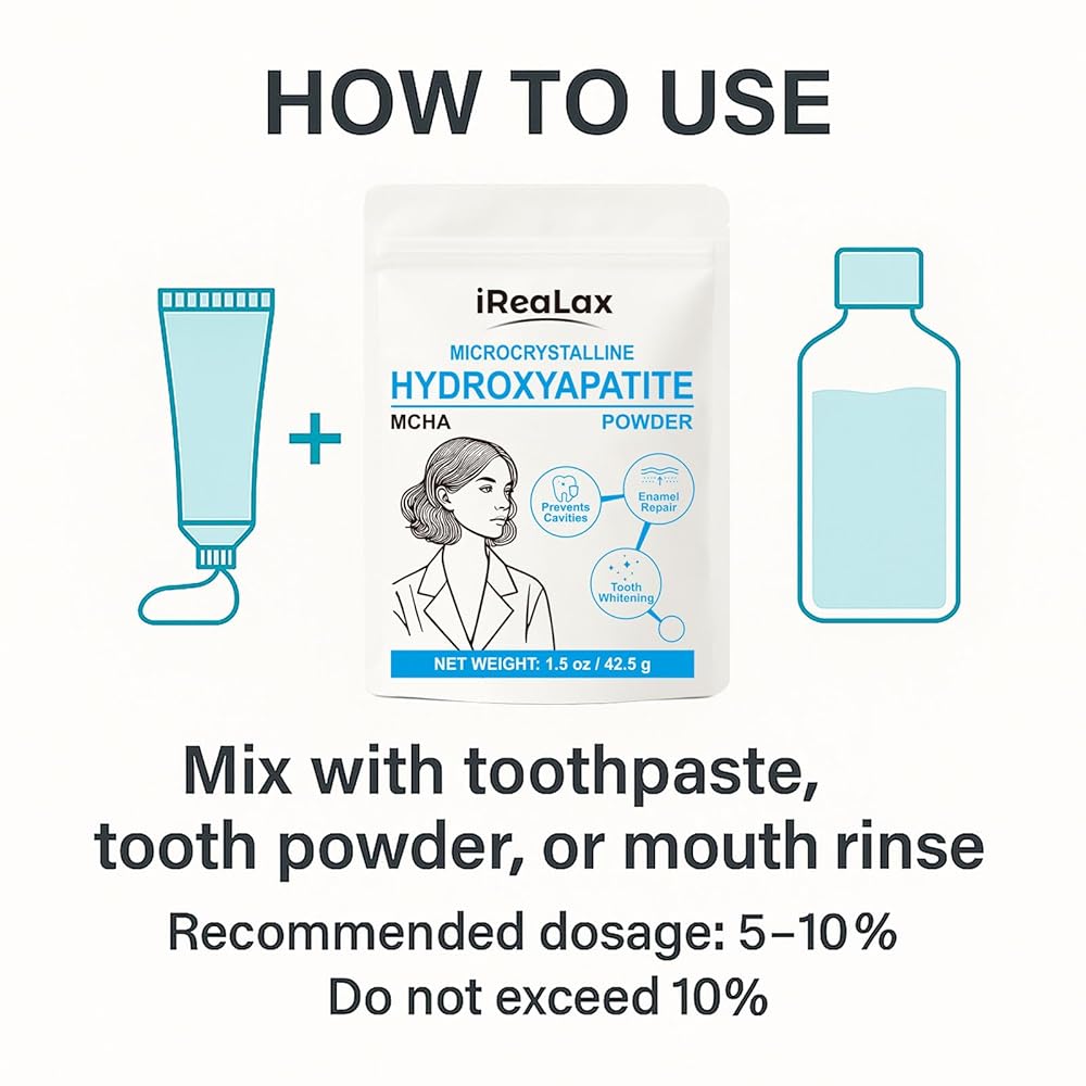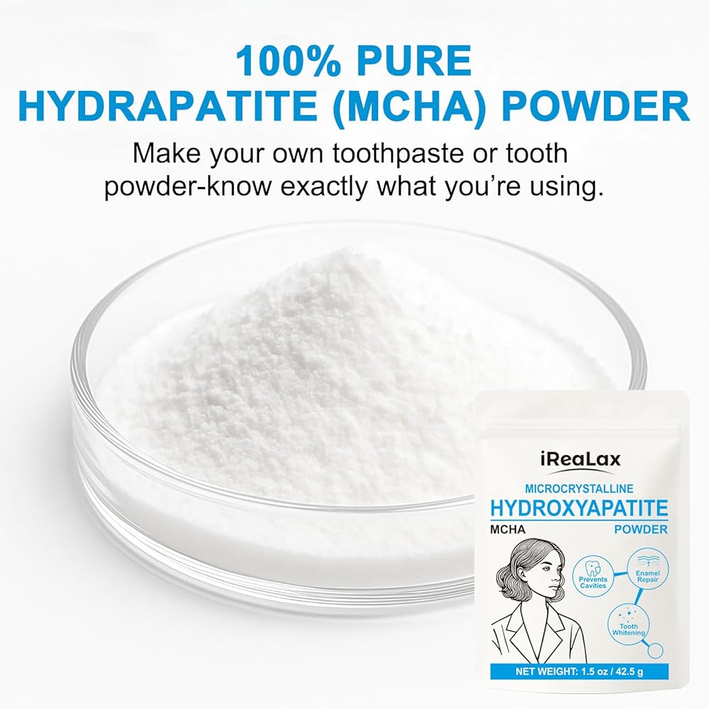 iReaLax 100% Pure Microcrystalline Hydroxyapatite (MCHA) Powder, 1.5oz (42.5g). Non Nano MCHA Micro Hydroxyapatite Powder.