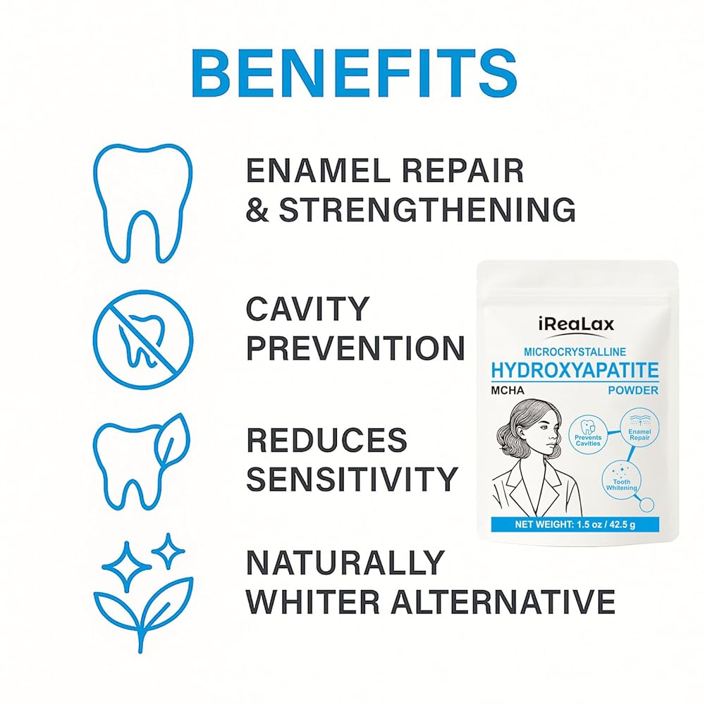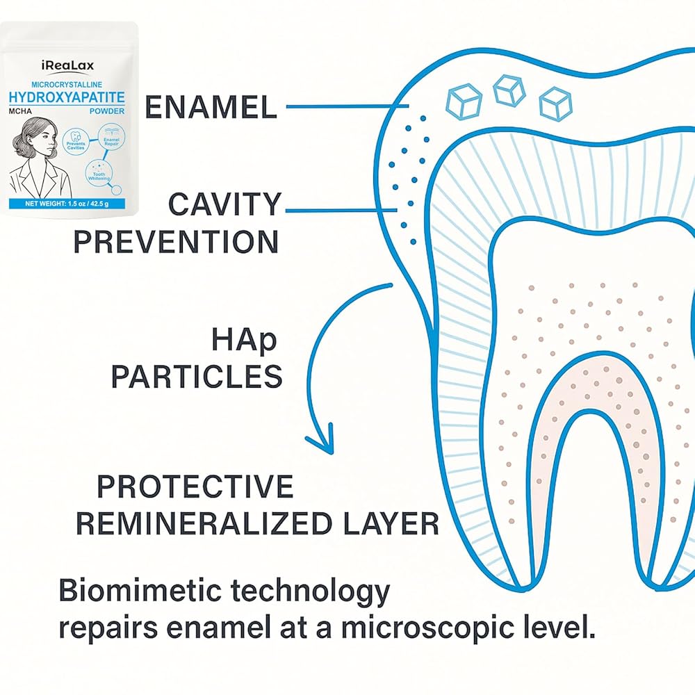 Prevents Cavities: By filling in microscopic cracks and imperfections, Hydroxyapatite protects enamel from demineralization and reduces the risk of cavities.
