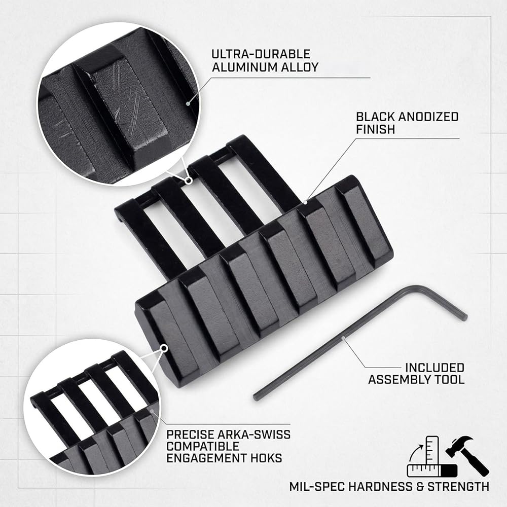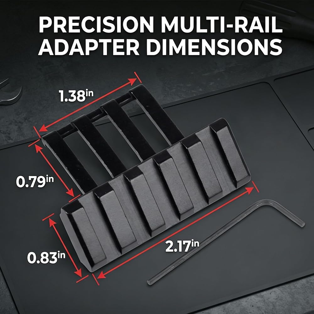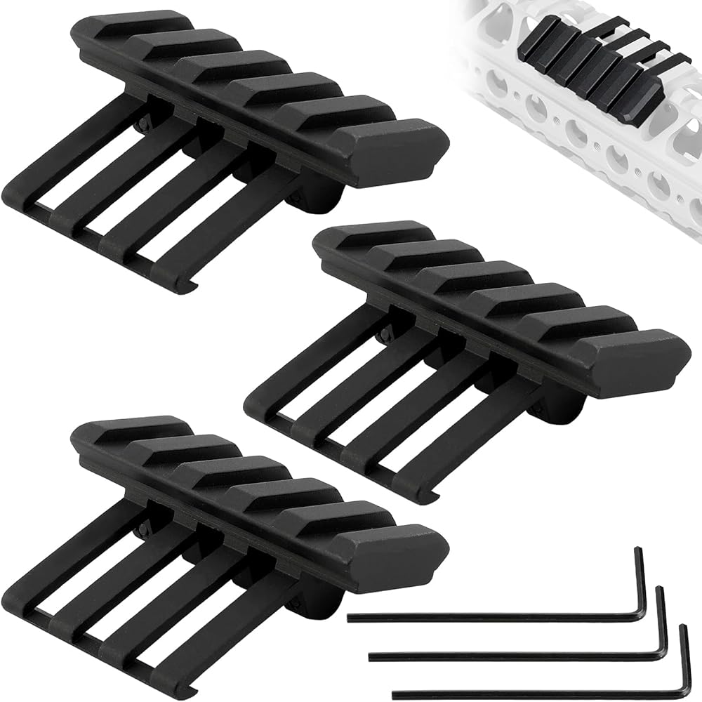 سهلة الاستخدام: تتميز هذه المجموعة العملية المكونة من 3 حوامل قضبان picatinny بمنصات كاملة ذات 5 فتحات مثالية لمختلف ملحقات قضبان picatinny. يوفر كل حامل ذو نقطة حمراء مساحة واسعة لتركيب الأضواء أو الليزر أو البصريات، مما يجعل وحدات التركيب على السكك الحديدية هذه إضافات أساسية لأي إعداد تكتيكي.
