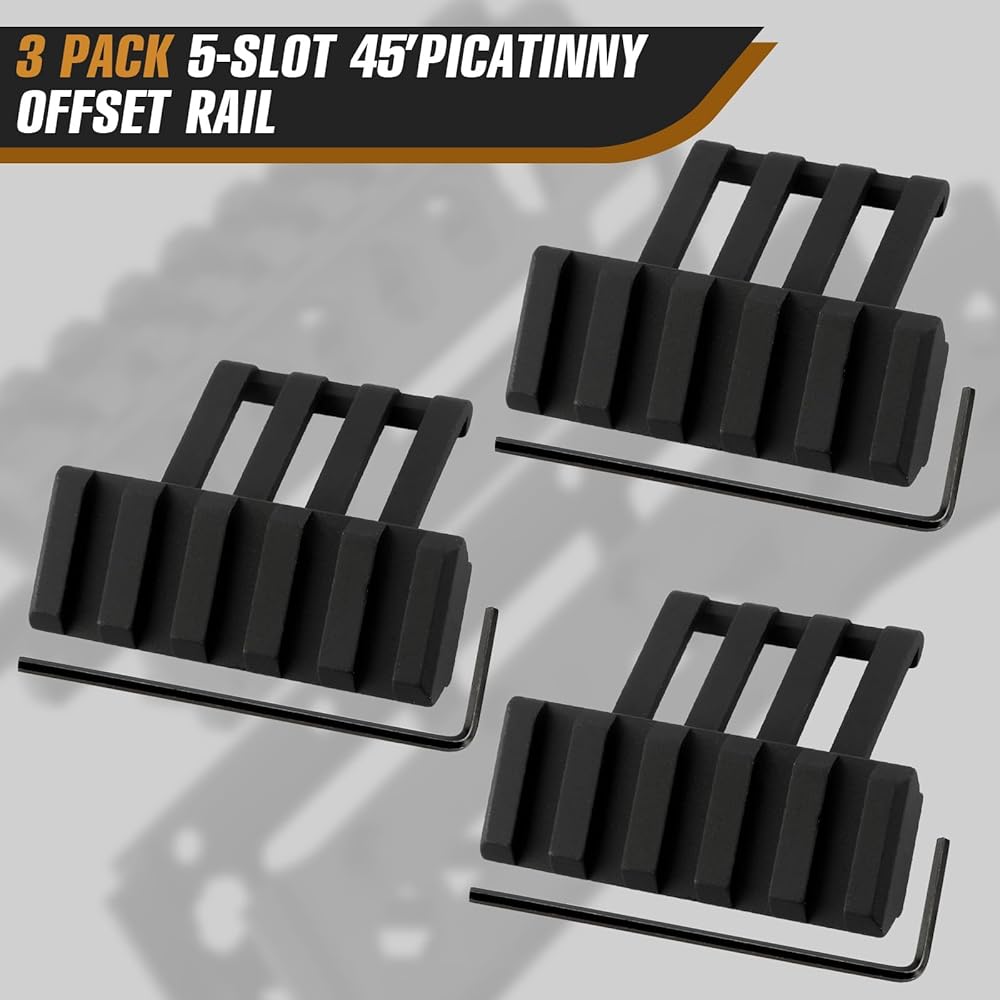 3 قطع من حوامل السكك الحديدية الأوفست Picatinny، 3/4/5 فتحات 45 درجة زاوية ألومنيوم منخفضة التركيب متوافقة مع مصباح يدوي، رؤية ليزر لنظام التصوير المحاكي