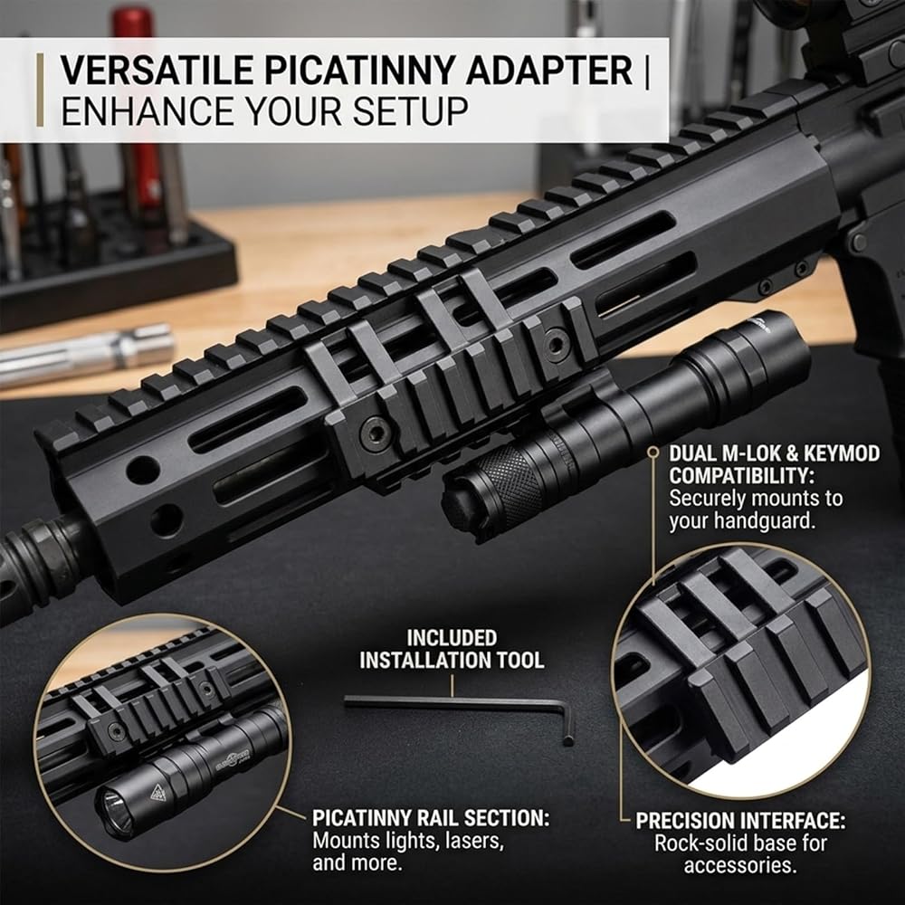 توافق عالمي مع أنظمة السكك الحديدية القياسية: تم تصميمه لتحقيق التكامل السلس، يتم تثبيت حامل الإزاحة هذا بزاوية 45 درجة بشكل آمن على أي أنظمة السكك الحديدية picatinny القياسية وأنظمة السكك الحديدية mlok picatinny. باعتباره حاملًا متعدد الاستخدامات للسكك الحديدية، فإنه يحافظ على الأداء المتسق عبر المنصات مع توفير قاعدة صلبة لجميع ملحقات قضبان البيكاتيني الخاصة بك.