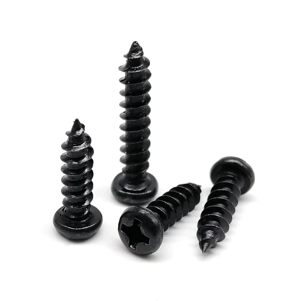 M2.6 M3 3/4/5-30mm Black Steel Small Phillips Pan Head Cross Round Head Screw 100Pcs