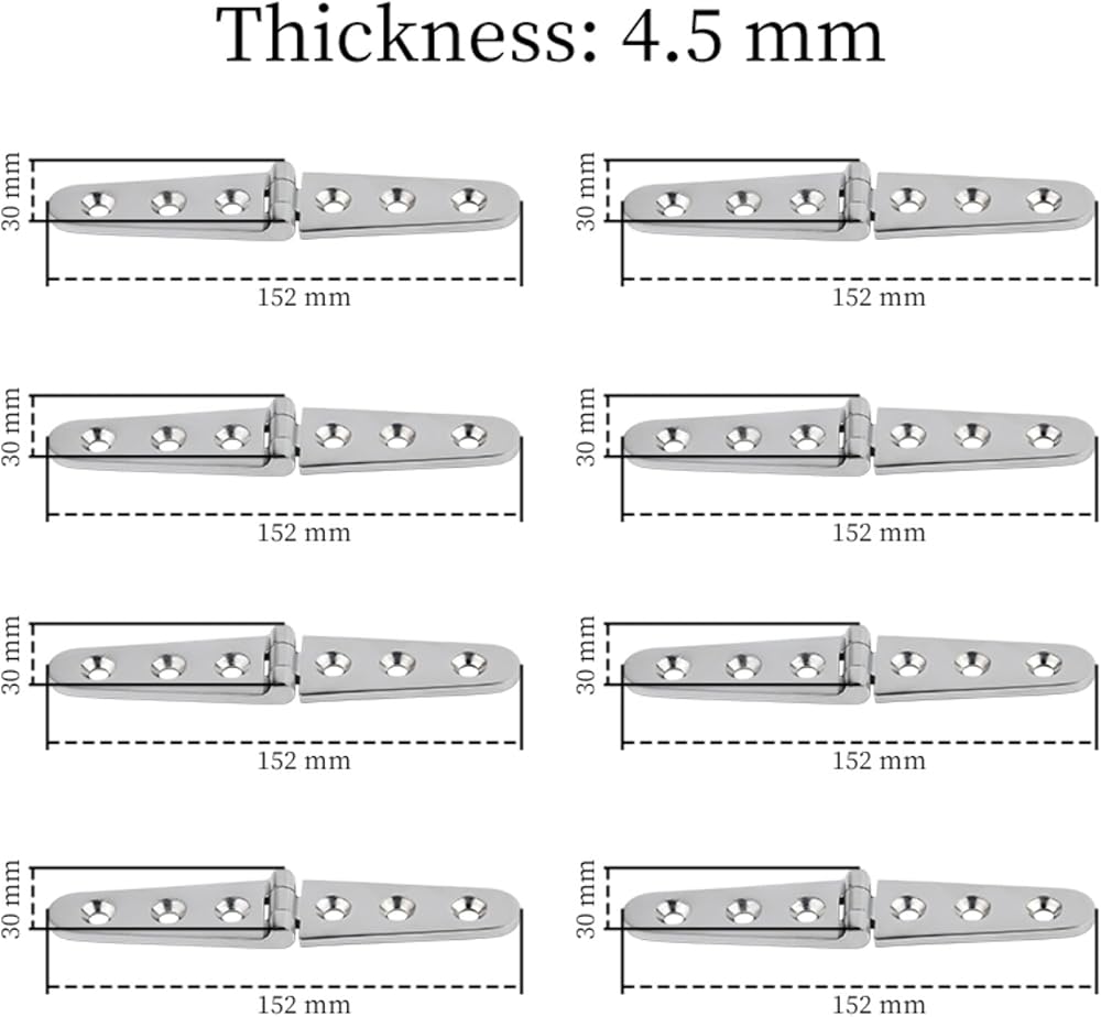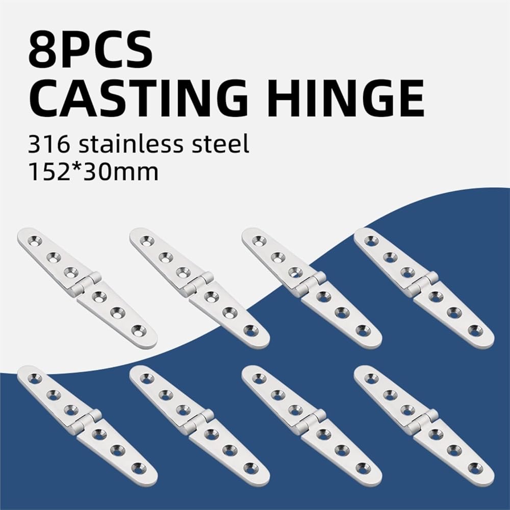 8pcs 30x152mm Stainless Steel 316 Door Strap Hinge With 6 Holes Mirror Polish Marine Boat Hardware Casting