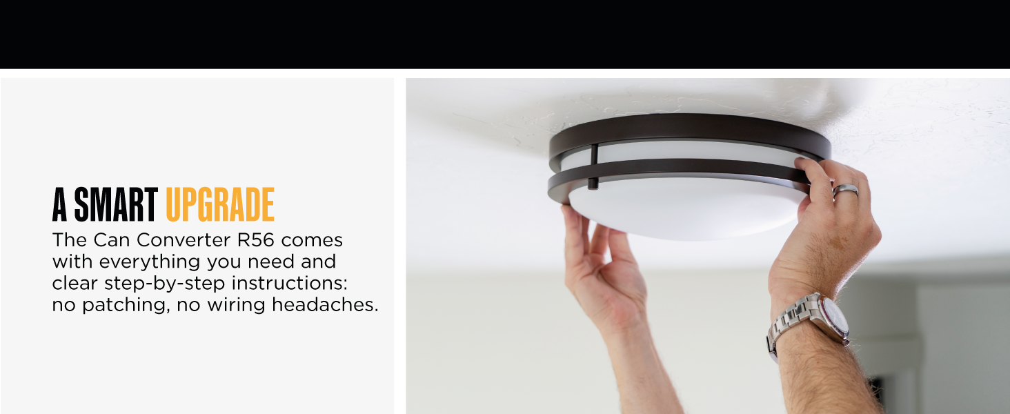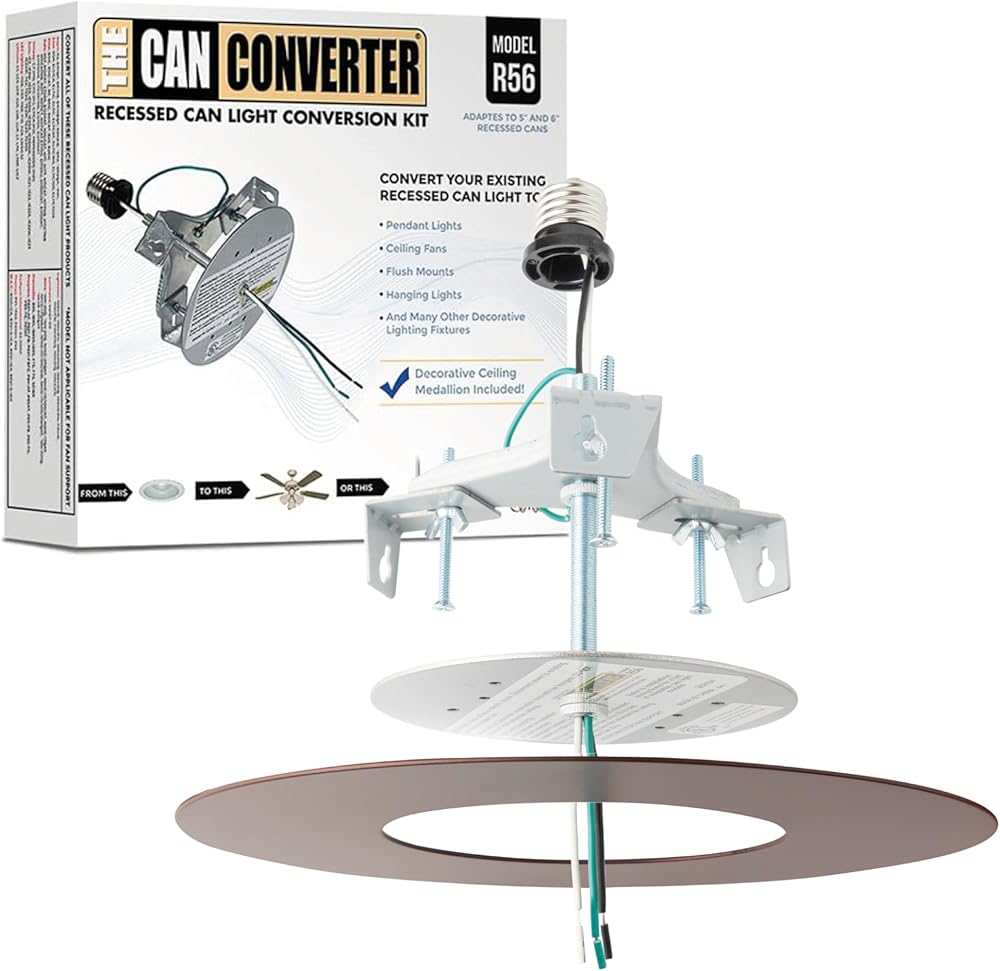 ضع إطارًا لنمطك: يعد طراز Can Converter R56 بمثابة ترقية عملية لتحسين ديكور المنزل تسمح لك بتحويل مصابيح العلبة الموجودة مقاس 5 أو 6 بوصات إلى نقطة تثبيت آمنة لأضواء معلقة أنيقة وعملية.
