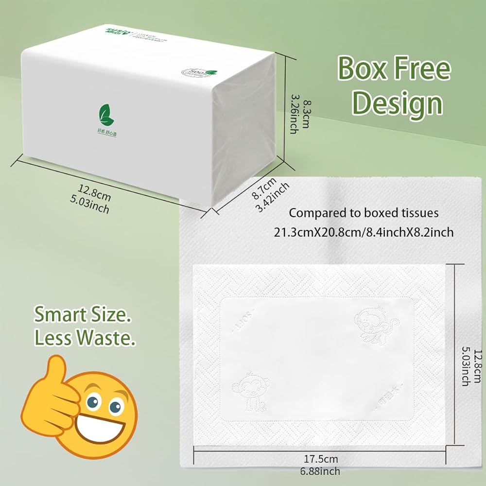 مقاس ذكي وفعال لتقليل النفايات: لقد صممنا أنسجتنا لتلبية الاحتياجات الحديثة. يبلغ مقاس كل ورقة 5.03 × 6.88 بوصة (12.8 سم × 17.5 سم) - حجم مثالي لمعظم المهام دون إهدار أنسجة أكبر. يعد هذا التصميم ذو الحجم الذكي مثاليًا للتنظيف السريع أو مسح وجهك أو العطس. يرجى ملاحظة: هذه الأنسجة تكون أكثر إحكاما عن قصد من الأنسجة التقليدية ذات الحجم الكبير في الولايات المتحدة.