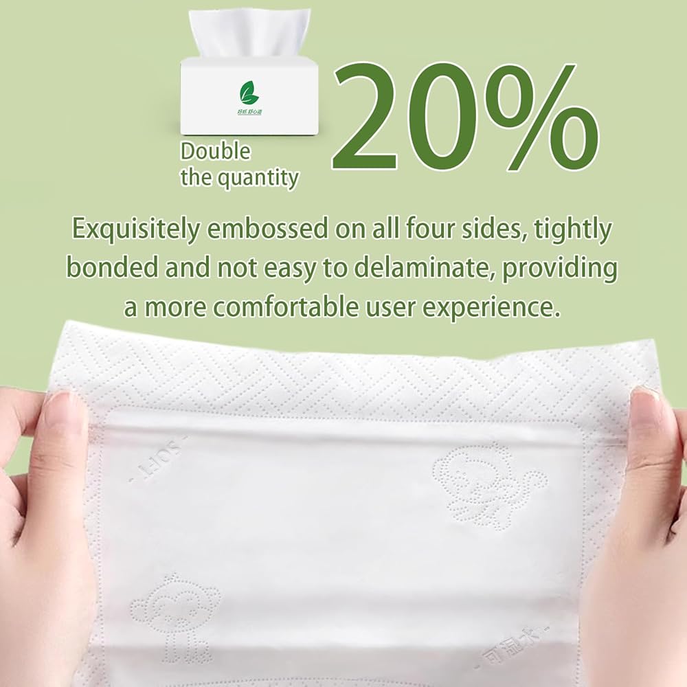 لطيفة على البشرة الحساسة: مصنوعة من لب الخشب البكر عالي الجودة، أنسجتنا خالية من اللوشن والعطور وناعمة الملمس بشكل استثنائي. يوفر الملمس الناعم شعورًا مريحًا يساعد على منع الاحمرار والتهيج الشائع في الأنسجة الخشنة والرقيقة، حتى مع الاستخدام المتكرر.