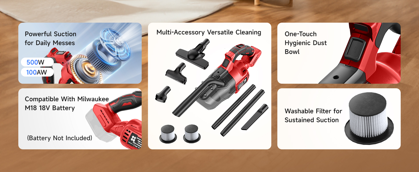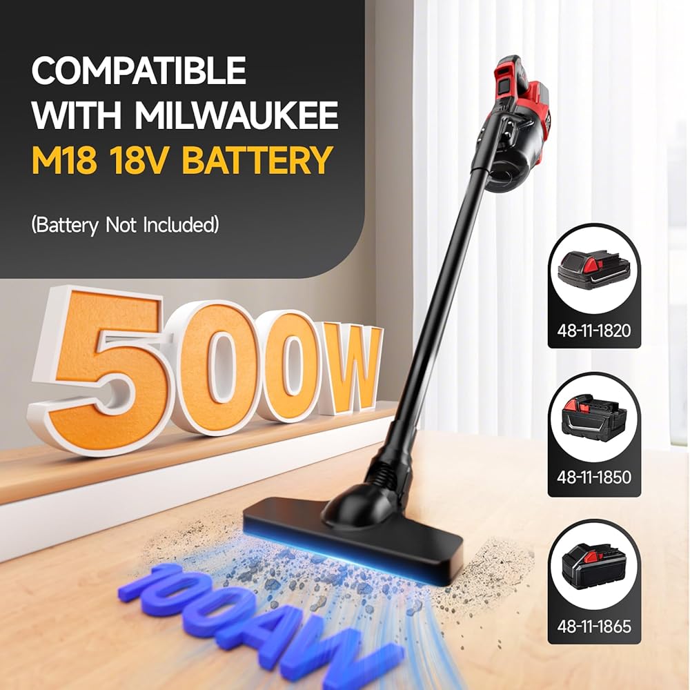 مكنسة يدوية لاسلكية 18 فولت - مكنسة كهربائية لاسلكية Gruecoinno متوافقة بشكل مثالي مع بطاريات Milwaukee M18 18 فولت 48-11-1811 48-11-1815 48-11-1820 48-11-1822 48-11-1828 48-11-1840 48-11-1841 48-11-1850 وما إلى ذلك (البطارية غير متضمنة)