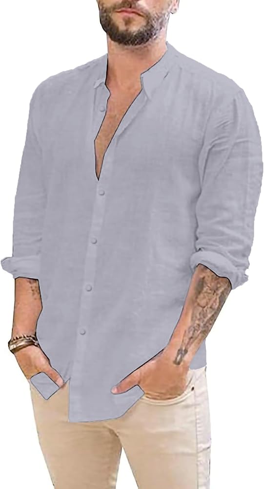 【قمصان كتان مقاومة للانكماش للرجال】خفيفة الوزن، ومسامية، وناعمة ومريحة