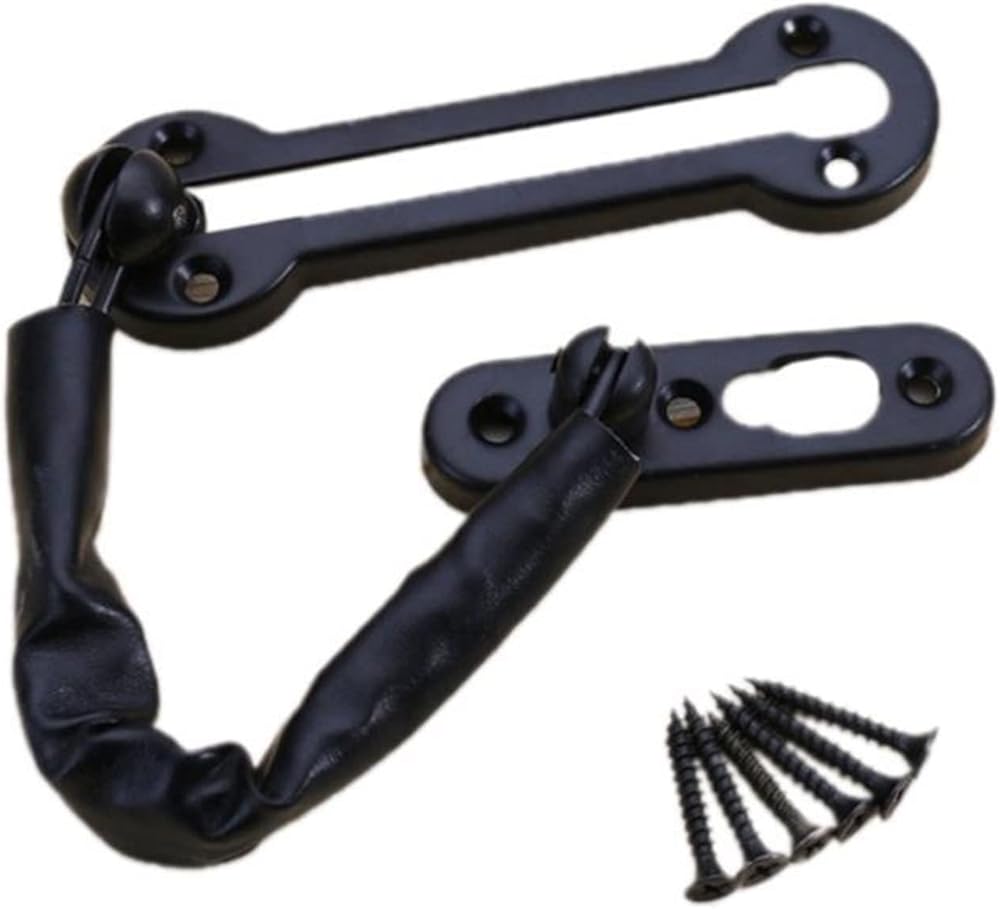 قفل سلسلة قفل باب المنزل من الفولاذ المقاوم للصدأ حارس باب بسلسلة مع زنبرك (أسود)