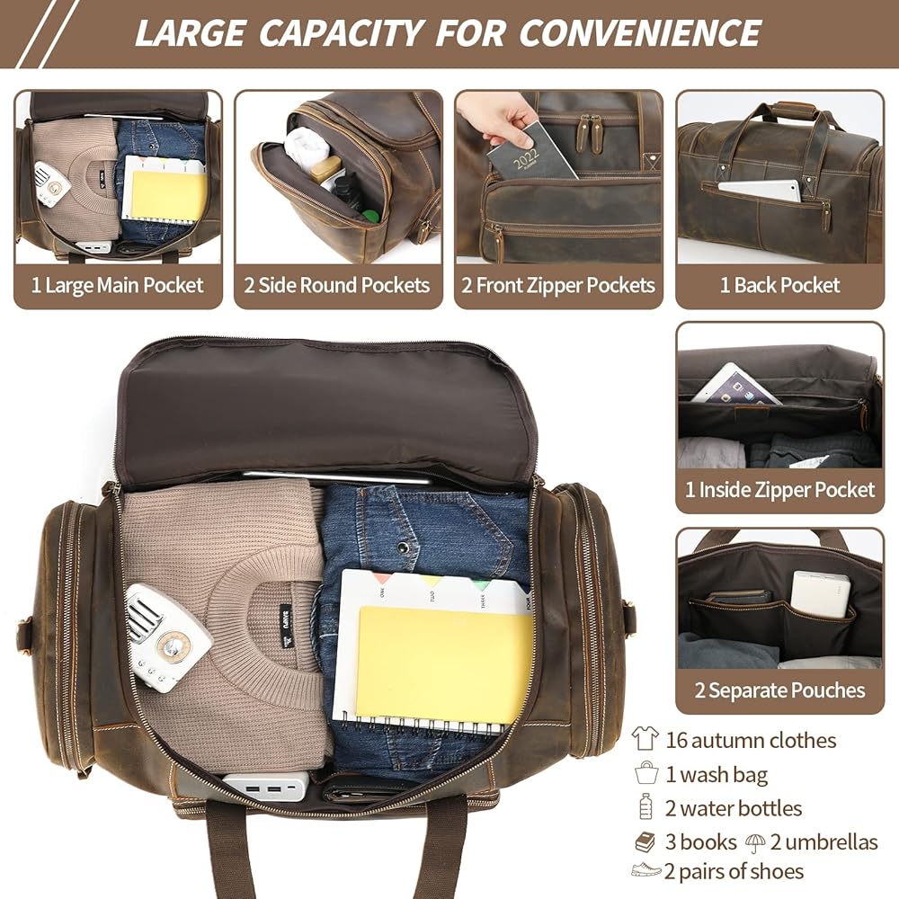 حقيبة كبيرة الحجم من القماش الخشن: سوف تتفاجأ بحجم حقيبة السفر هذه. الحجرة الرئيسية الكبيرة والجيوب الداخلية المتنوعة مثالية للملابس ومستلزمات السفر. مناسبة لعطلة نهاية الأسبوع أو رحلة العمل لمدة 3-4 أيام، ويمكن استخدامها كرحلة محمولة شنطة.