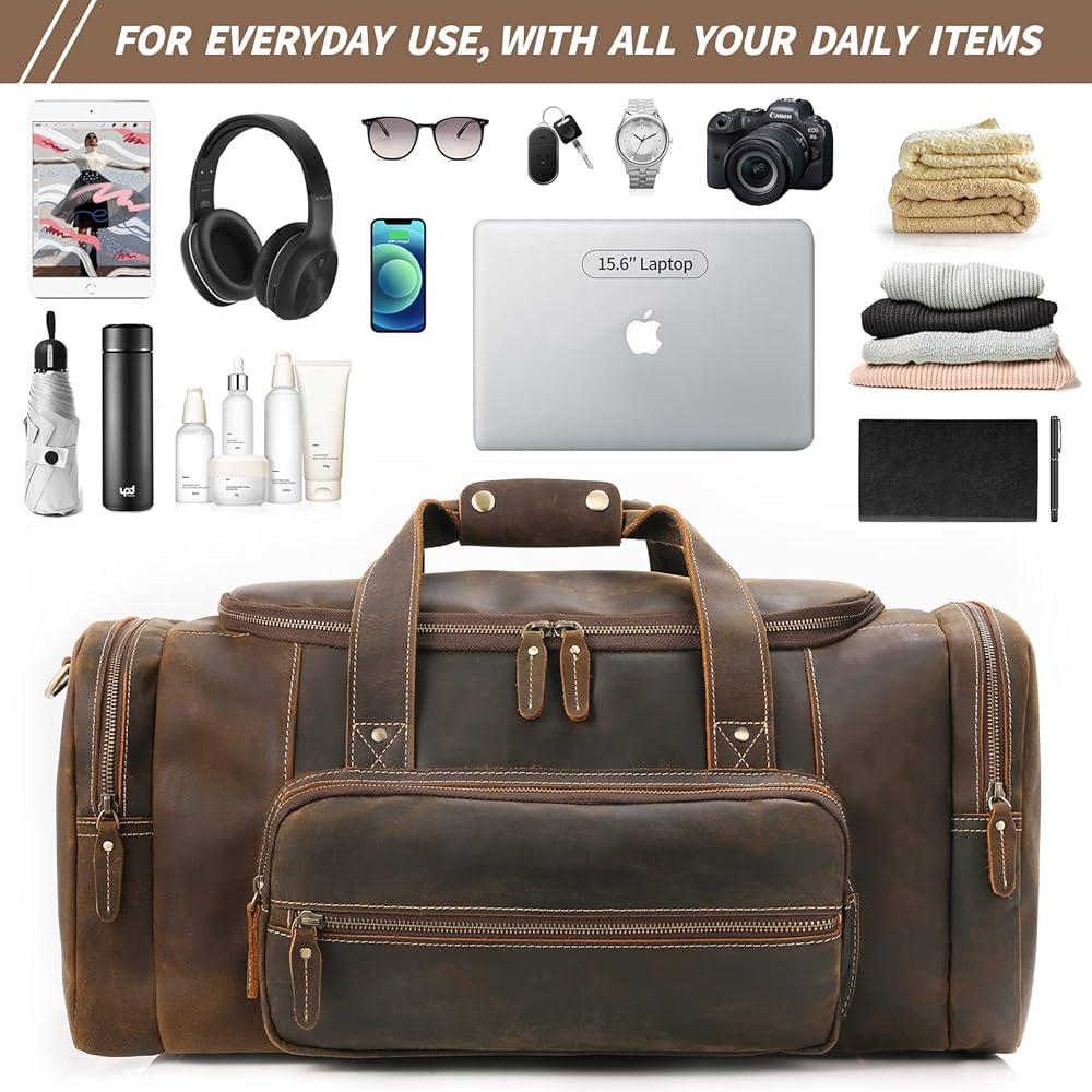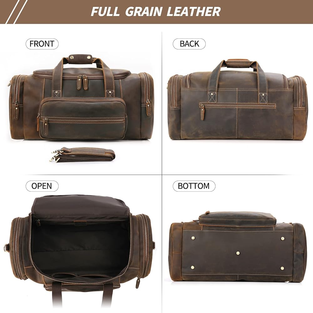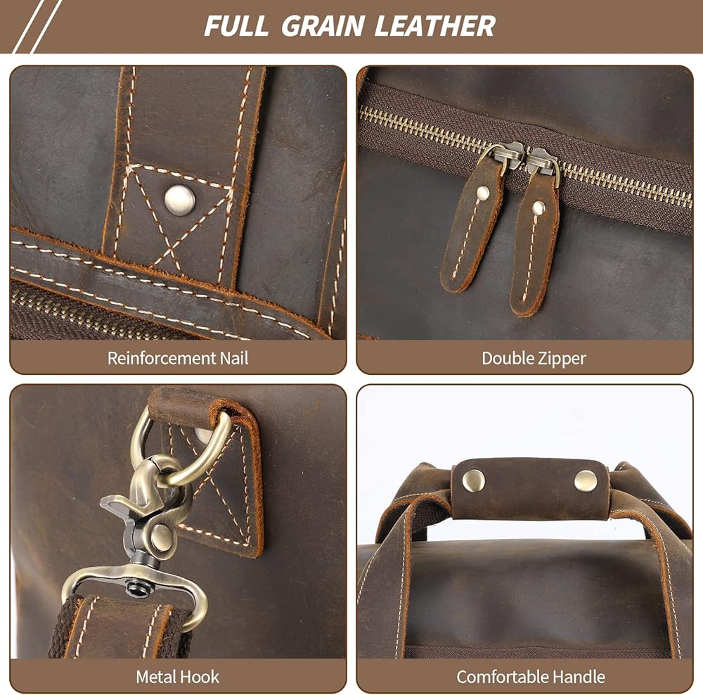 حقائب جلدية من القماش الخشن، خامة عالية الجودة: هذه الحقيبة مصنوعة من جلد الحصان المجنون الأصلي عالي الجودة وقماش متين مقاوم للماء، ومسامير سفلية. الجودة الممتازة تضمن متانة طويلة الأمد. القماش عالي الكثافة لن يتمزق أو يتمزق عندما ضع الكثير من الأشياء في حقيبة القماش الخشن. كما أن الأجزاء الصلبة المصنوعة من سبائك الزنك عالية الجودة لن تتراكم الصدأ بسهولة.