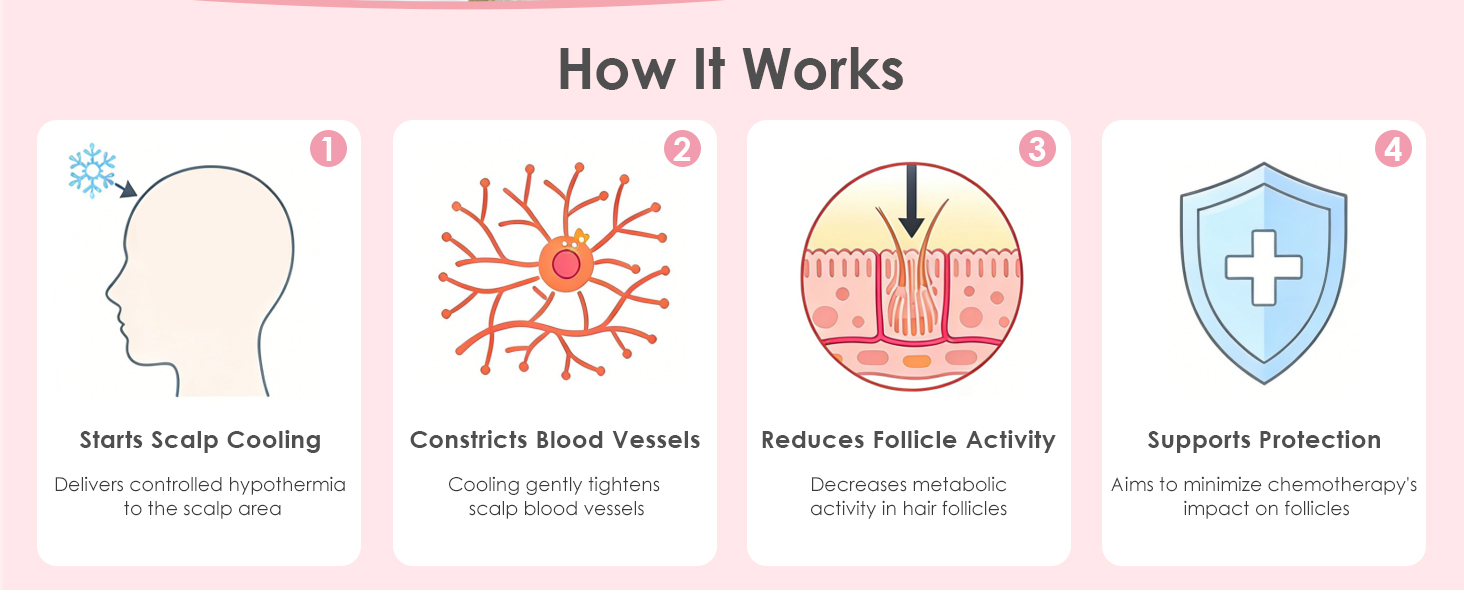 تغطية أكبر لحماية فروة الرأس الكيميائية: تتميز قبعتنا الباردة الكيميائية بقاعدة ممتدة إضافية مقاس 1.2 بوصة، مما يخلق سطح تبريد أوسع يبقى باردًا لفترة أطول. من خلال تضييق الأوعية الدموية في فروة الرأس بلطف، فإنه يساعد على حماية بصيلات الشعر أثناء التسريب ويهدئ حساسية فروة الرأس.