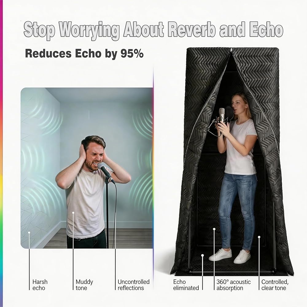 • 【Acoustic Treatment】Wrapped in 720° seamless sound-absorbing cotton to reduce echoes by 95%. The interior space is optimized to simulate a professional recording studio environment, delivering unparalleled high-fidelity audio quality for your creations.