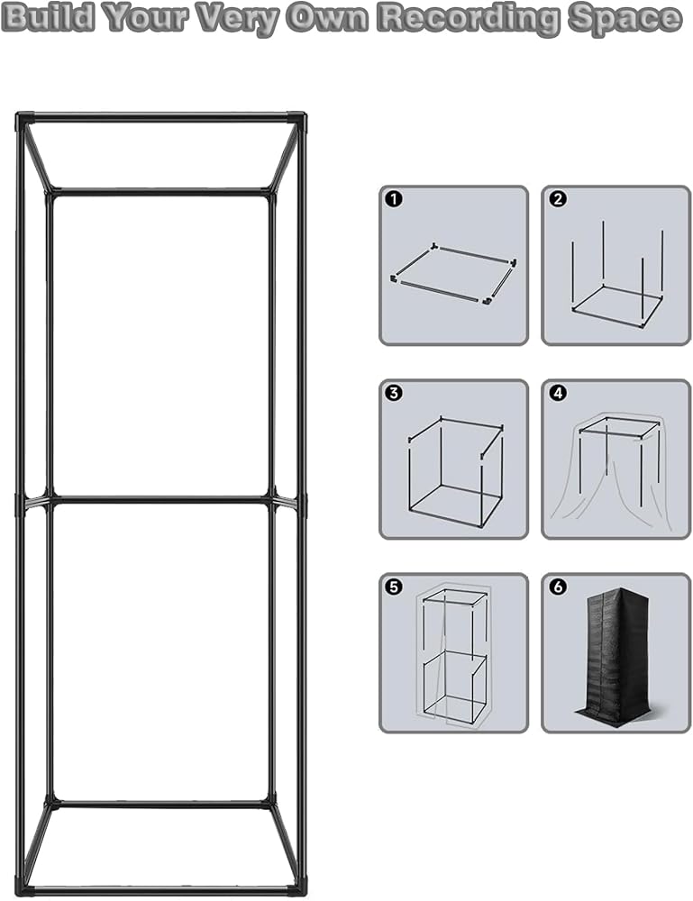• 【Structure Upgrade】Unlike other vocal booths that rely on four separate posts prone to noticeable shaking during use, Augioth enhances stability by adding central connection points to link all four pillars together. We have also increased the wall thickness of the PVC pipes, significantly improving the overall rigidity and stability of the recording booth.