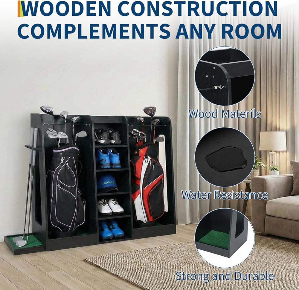 Name: Wooden Golf Bag Storage Rack