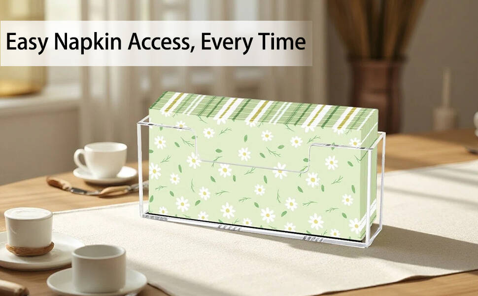 • سهولة الوصول إلى المناديل: الفتحة المنحنية ذات التصميم الفريد تسمح لك بإمساك المناديل بسلاسة وسهولة، مما يضمن الراحة أثناء الوجبات أو التجمعات.