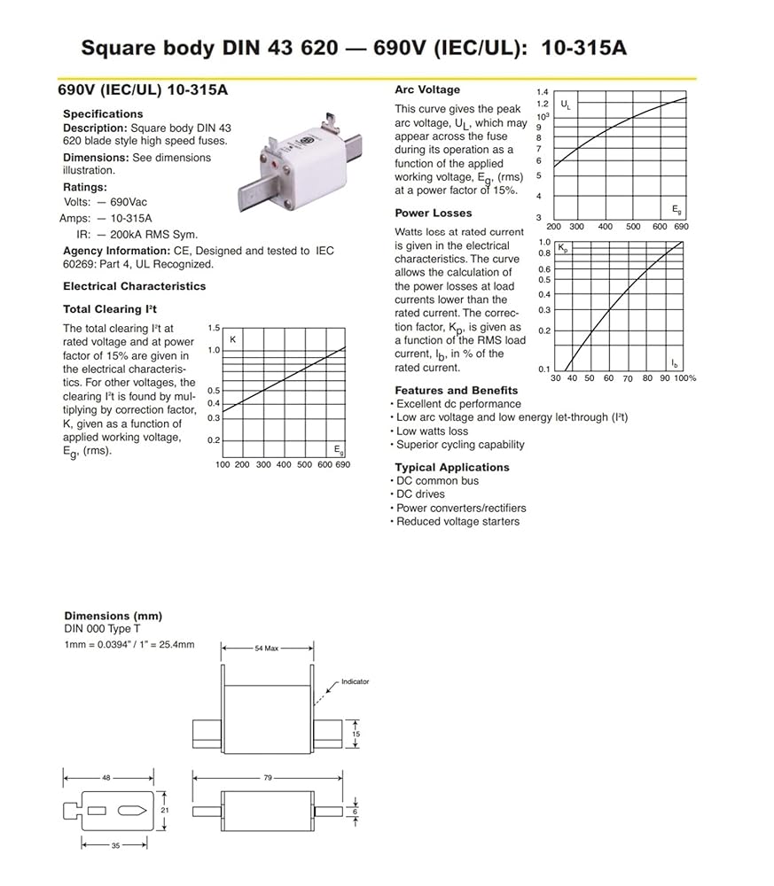 • fuse 170M1569 Special fuse DIN 43 620V 160A