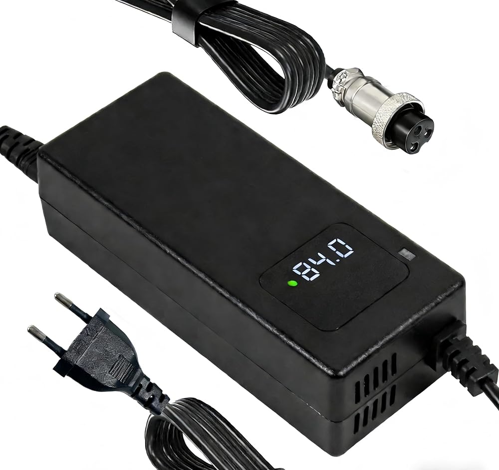 شاحن ذكي لبطارية الليثيوم 84 فولت 2 أمبير، مناسب لبطاريات الليثيوم 16S 72 فولت، مزود بموصل DC GX16-3 - شاحن تيار مستمر محمول وشاحن جهد ثابت مع مؤشر LED