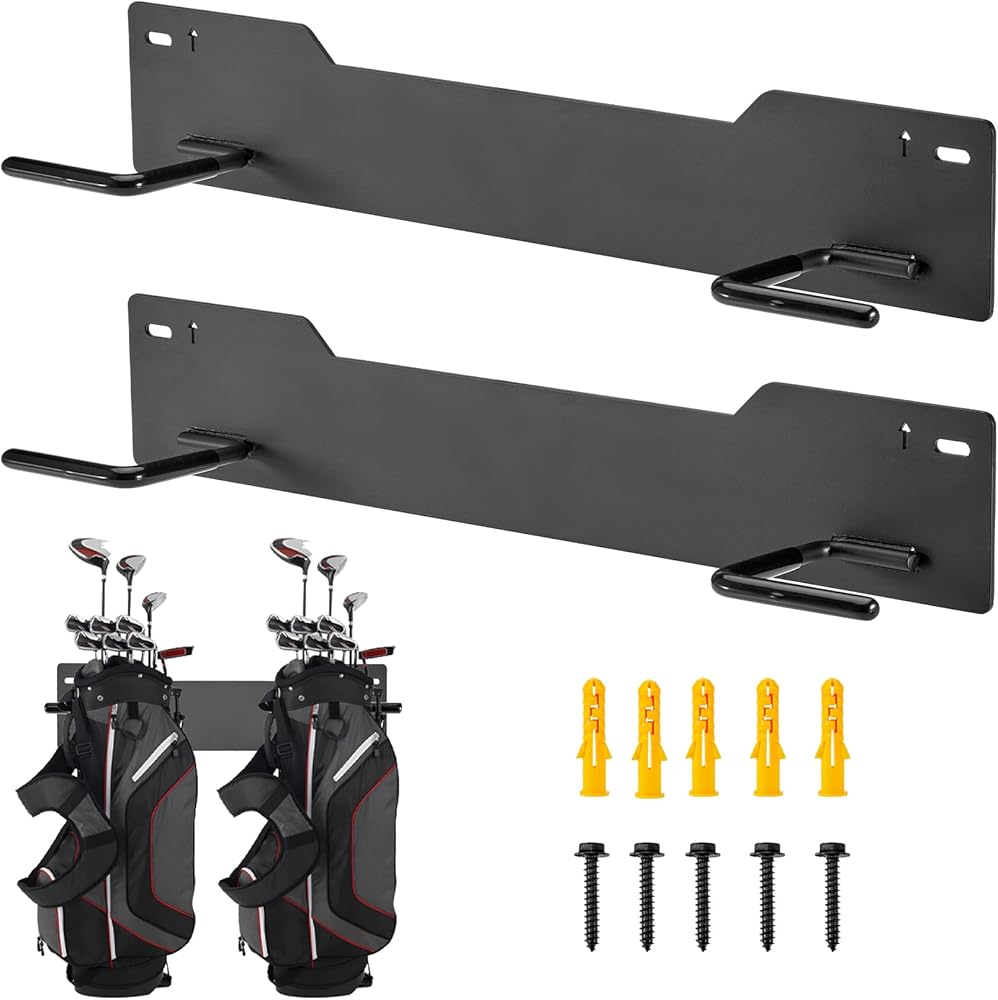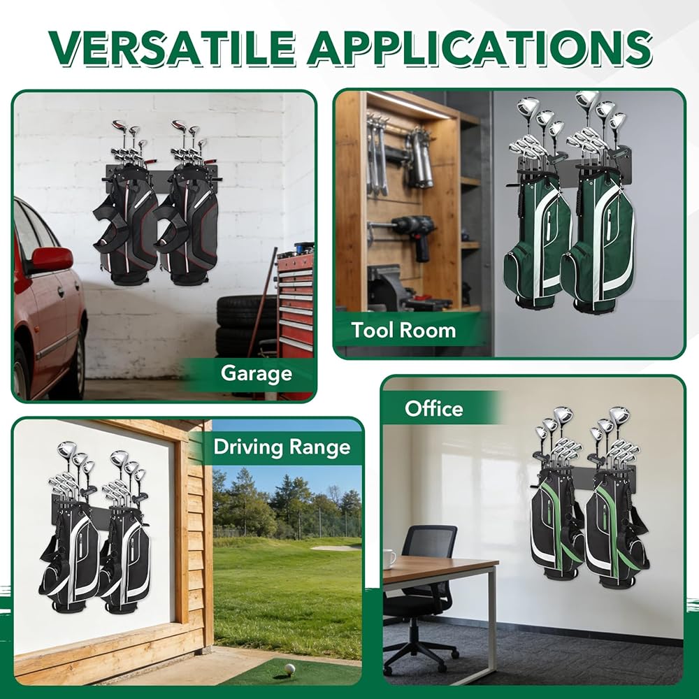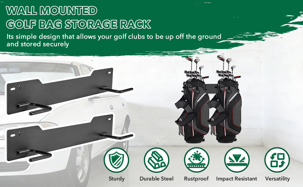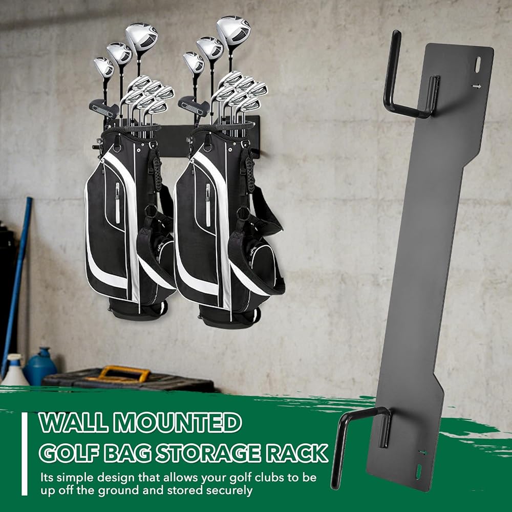 زيادة المساحة: تصميم مثبت على الحائط بقضيب مزدوج يخزن حقيبتي جولف بشكل آمن عن الأرض، مما يحرر مساحة الأرضية على الفور ويحافظ على المرآب أو منطقة التخزين الخاصة بك نظيفة ومنظمة