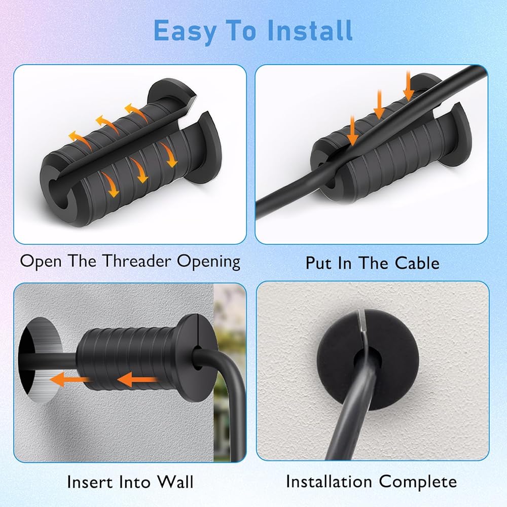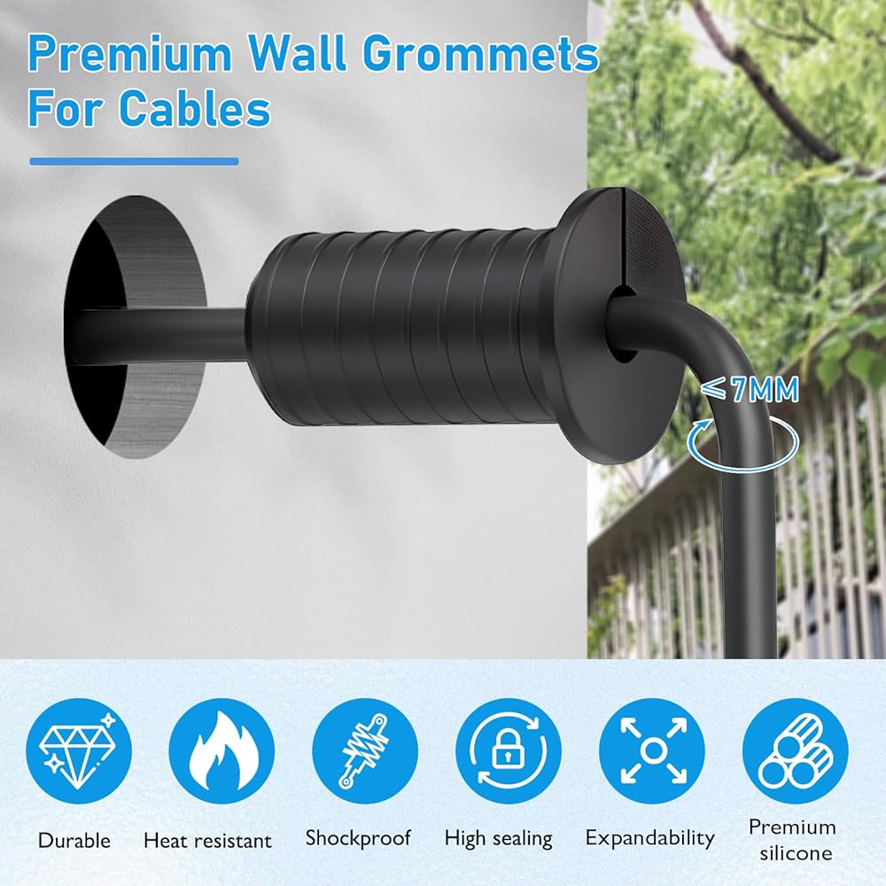 الحجم والكمية: 4 قطع من حلقات الحائط السوداء للكابلات، حلقات الكابلات الخاصة بنا متوافقة مع كابلات Starlink والأسلاك القياسية بقطر أقل من 9/32 بوصة (7 مم)، مناسبة لفتحات الحائط بقطر 3/4 بوصة (19 مم) وارتفاع حلقة الكابل 1-1/2 بوصة (38 مم)