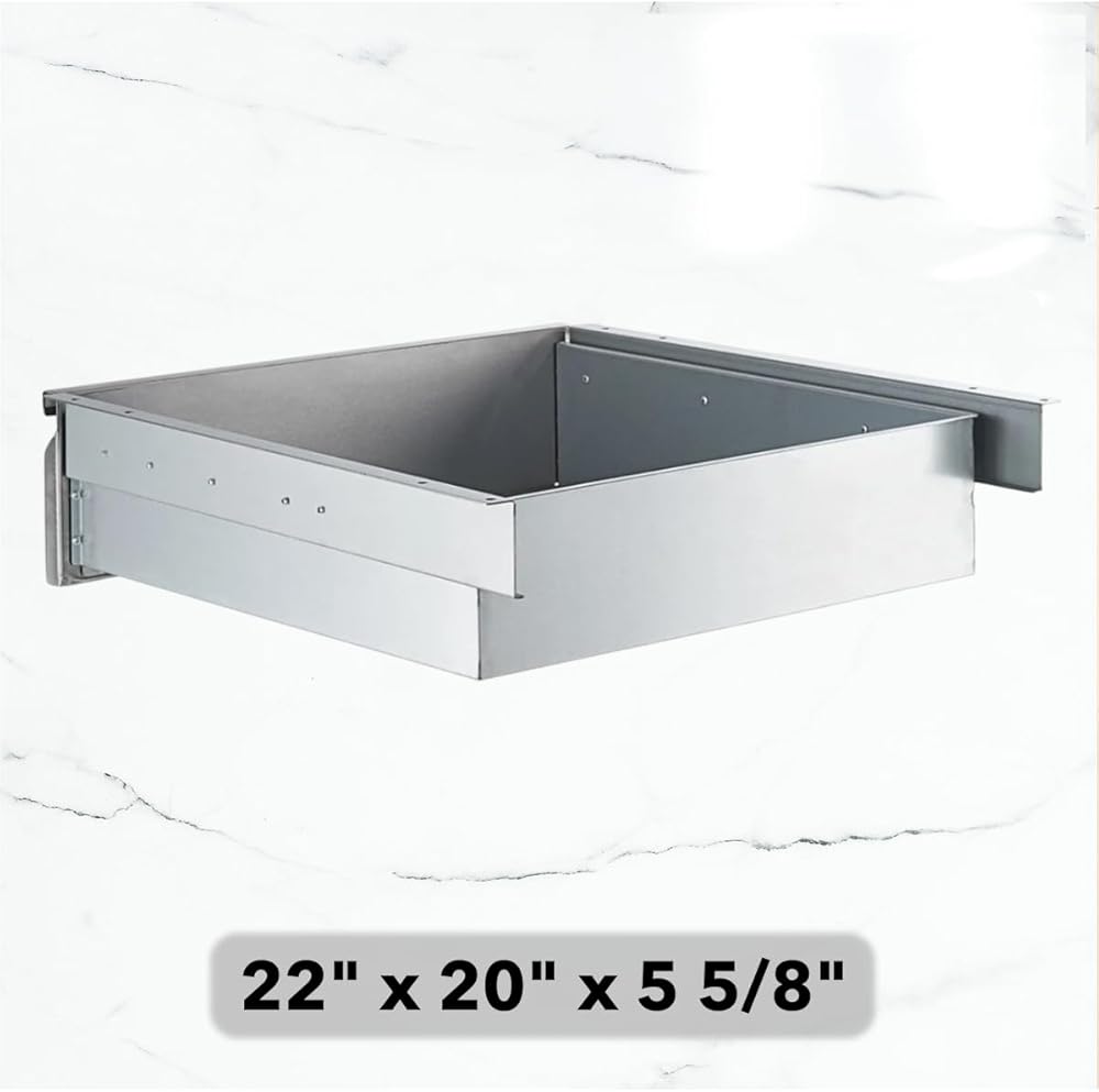 درج معدني لطاولة العمل التحضيرية - واجهة من الفولاذ المقاوم للصدأ مقاس 22 بوصة × 20 بوصة × 5 5/8 بوصة، وجسم مجلفن مقاس 18 بوصة، وشرائح محمل كروي - تناسب طاولات عميقة مقاس 24 بوصة و30 بوصة (طول 36 بوصة على الأقل)