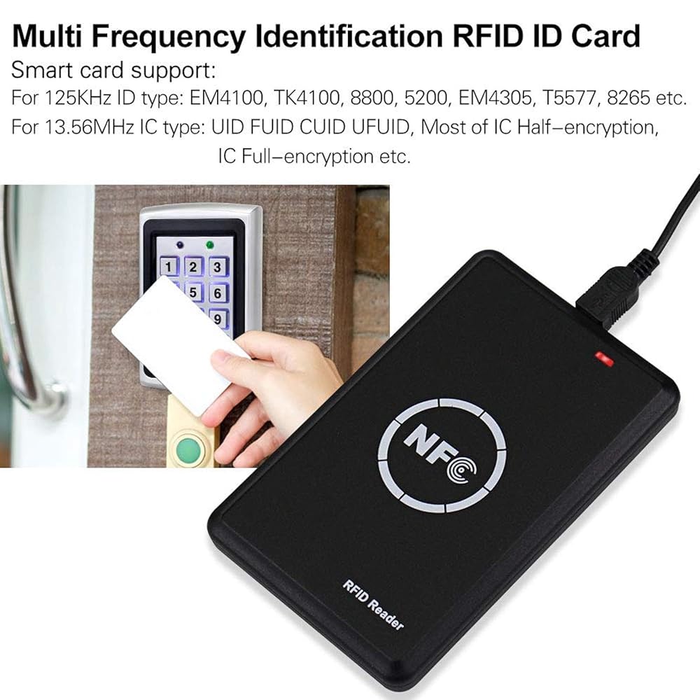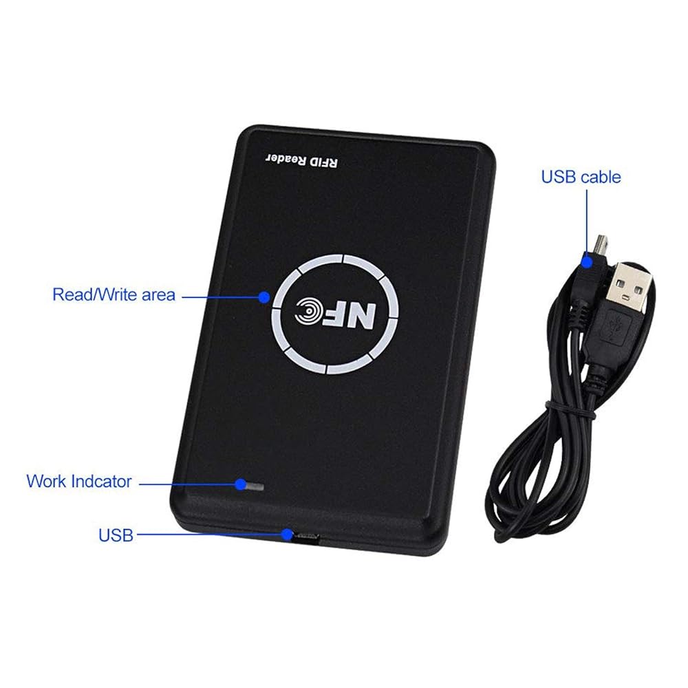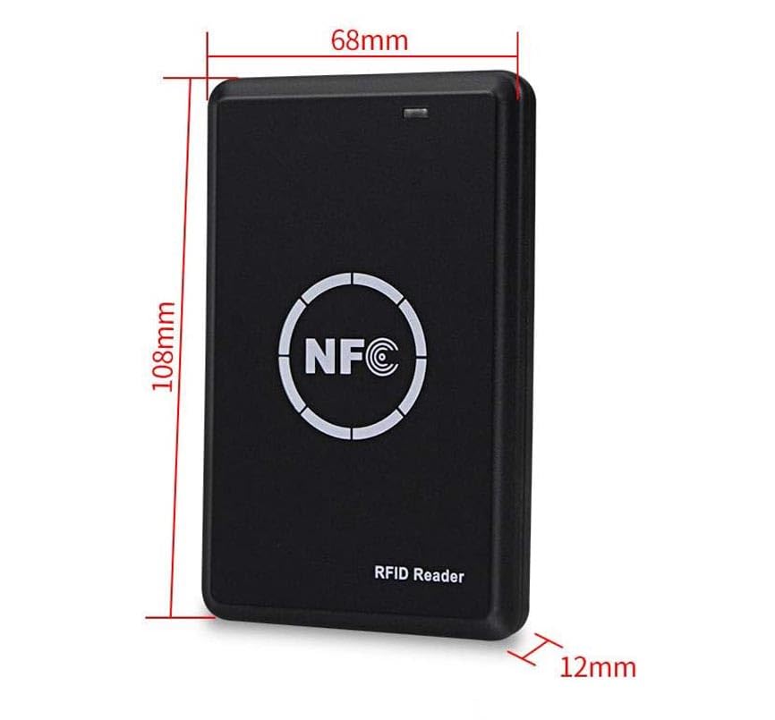 IC/ID RFID reader: NFC reader scanner for 125khz/13.56Mhz cards, support for cracked IC encrypted cards, driver free, LED lighted prompts, USB full speed interface with software.