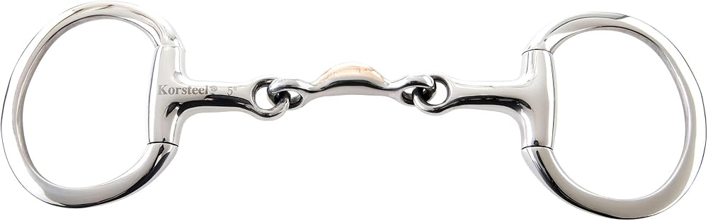 The eggbutt snaffle has fixed, oval shaped rings offering a consistent contact. The double jointed mouthpiece avoids the nutcracker action of a single joint, preventing the bit from hitting the top of the mouth and gives the rider independant control over each side of the mouth. The copper half moon promotes salivation, and gives the tongue a little extra space for easy swallowing.