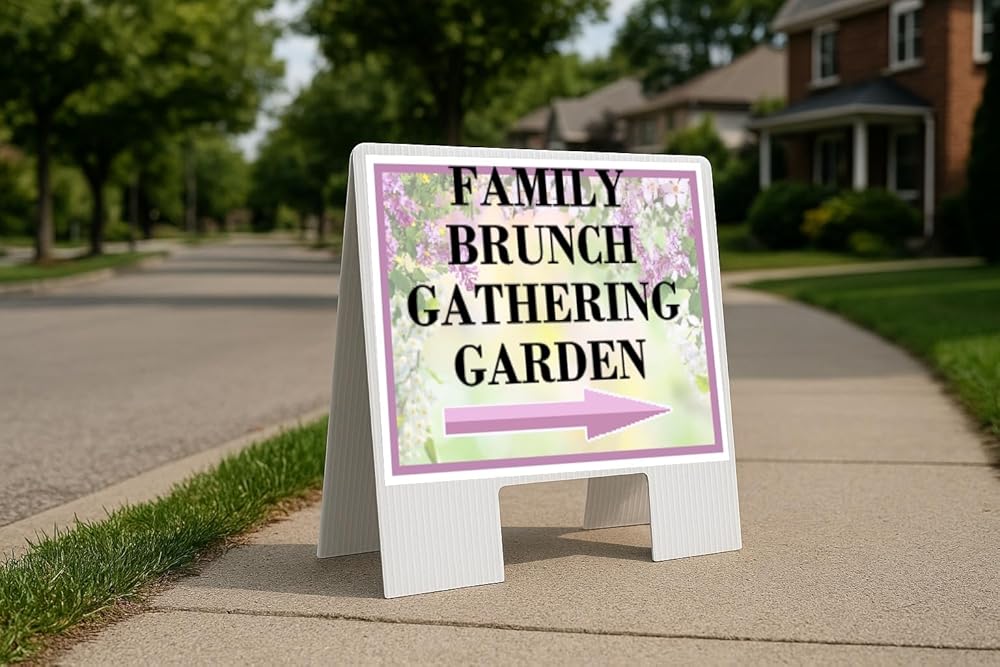 • Freestanding A-Frame Design – Sets up quickly without stakes or extra hardware; stable on sidewalks, driveways, or entryways.