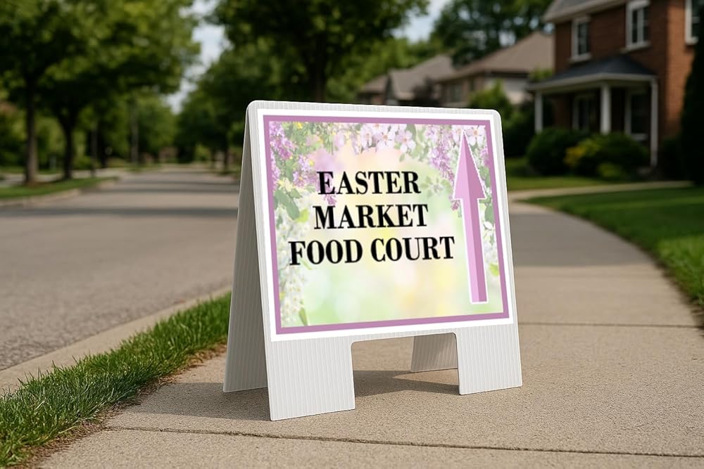 • Freestanding A-Frame Design – Sets up quickly without stakes or extra hardware; stable on sidewalks, driveways, or entryways.