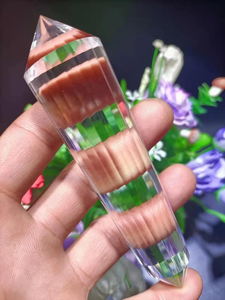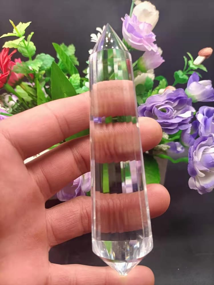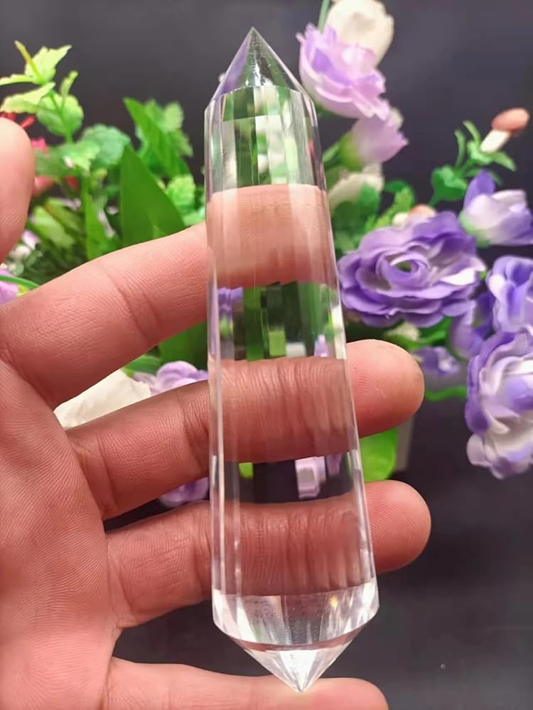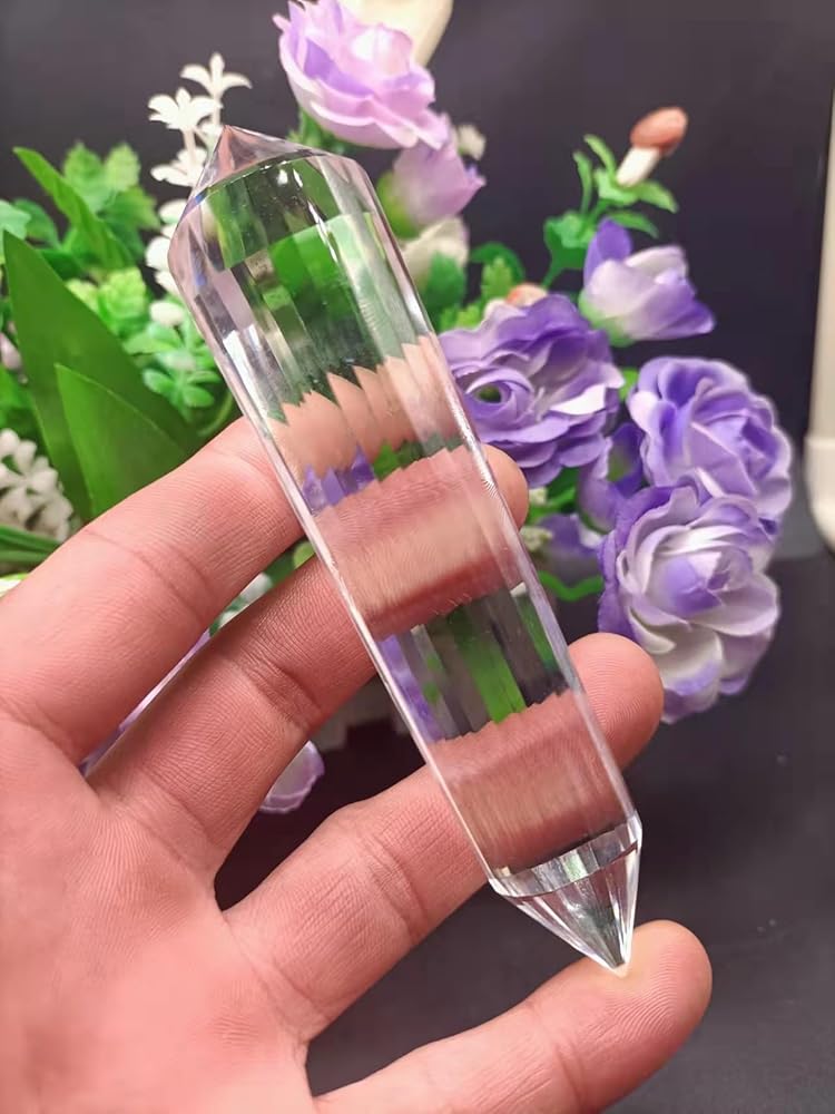 1 قطعة عصا سحرية كريستال كوارتز شفافة مزدوجة الإيقاف 24 جانبًا، 120 مم