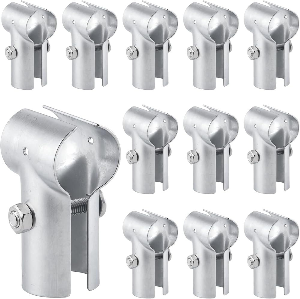 مشابك السكك الحديدية 1-3/8 بوصة × 1-3/8 بوصة، تركيبات سياج ربط سلسلة مشابك نهاية السكك الحديدية T، لوحة T لأنبوب OD، أنبوب سياج مجلفن T، أجزاء ربط السلسلة، 12 قطعة