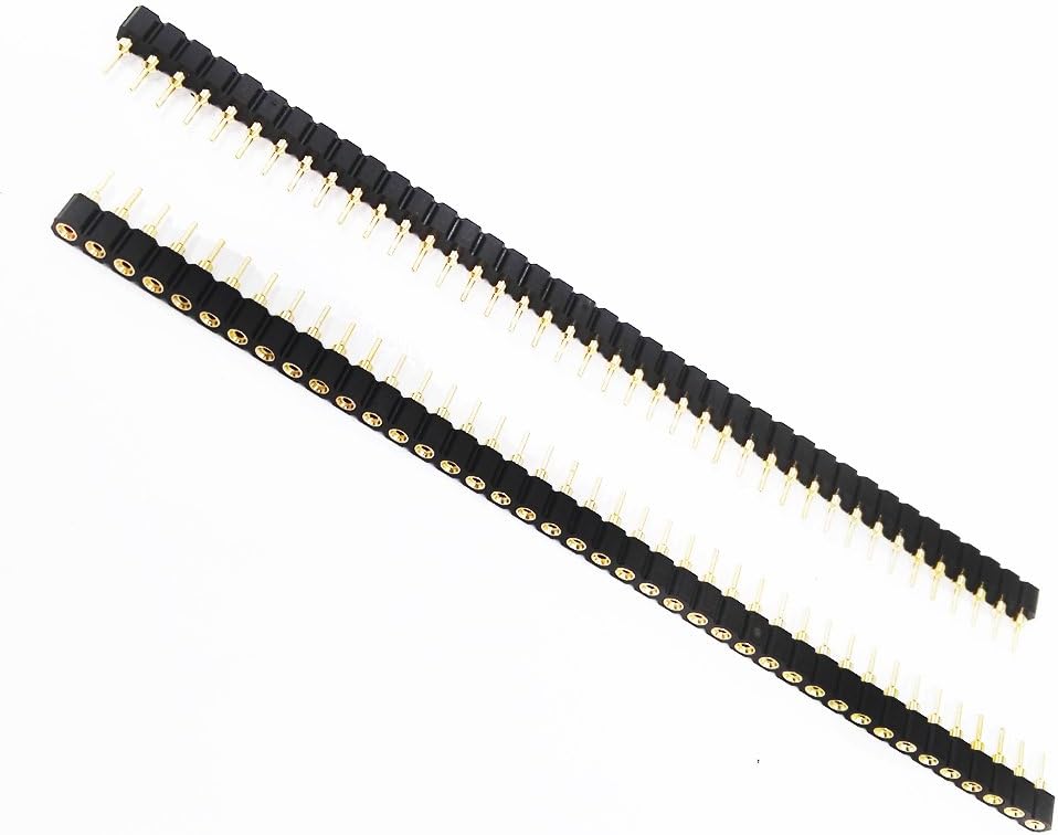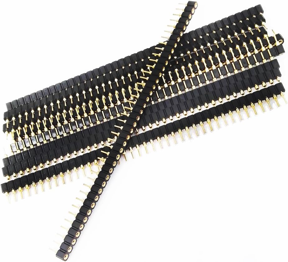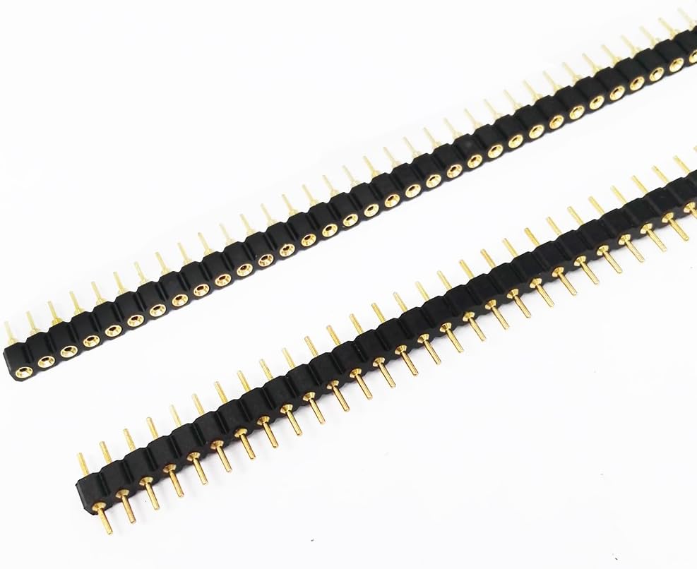 E-Simpo 10 قطع 2.54 مم (0.1 بوصة) مقبس رأس أنثى دائري ذهبي صف واحد Arduino PCB أنثى IC كريستال سوك عالي الجودة (1x40P رأس أنثى ثقب)
