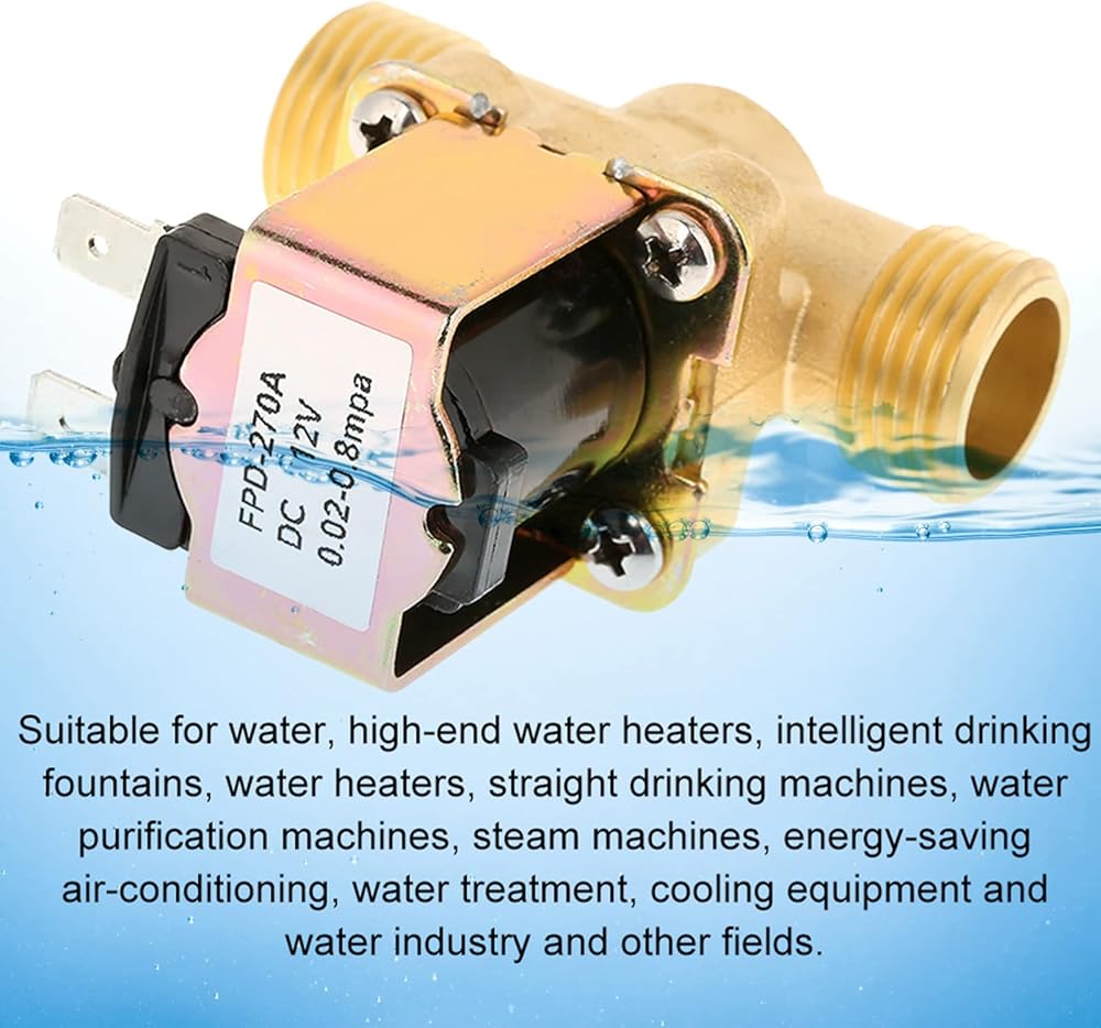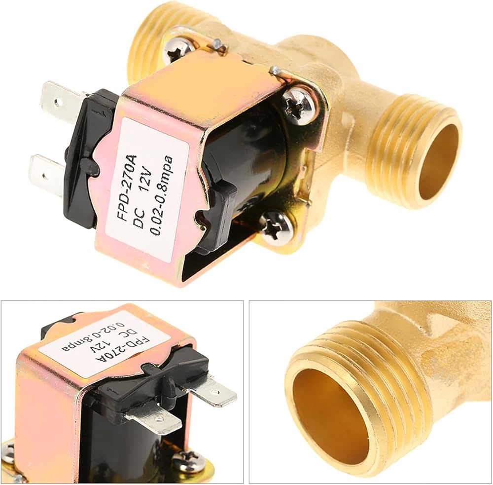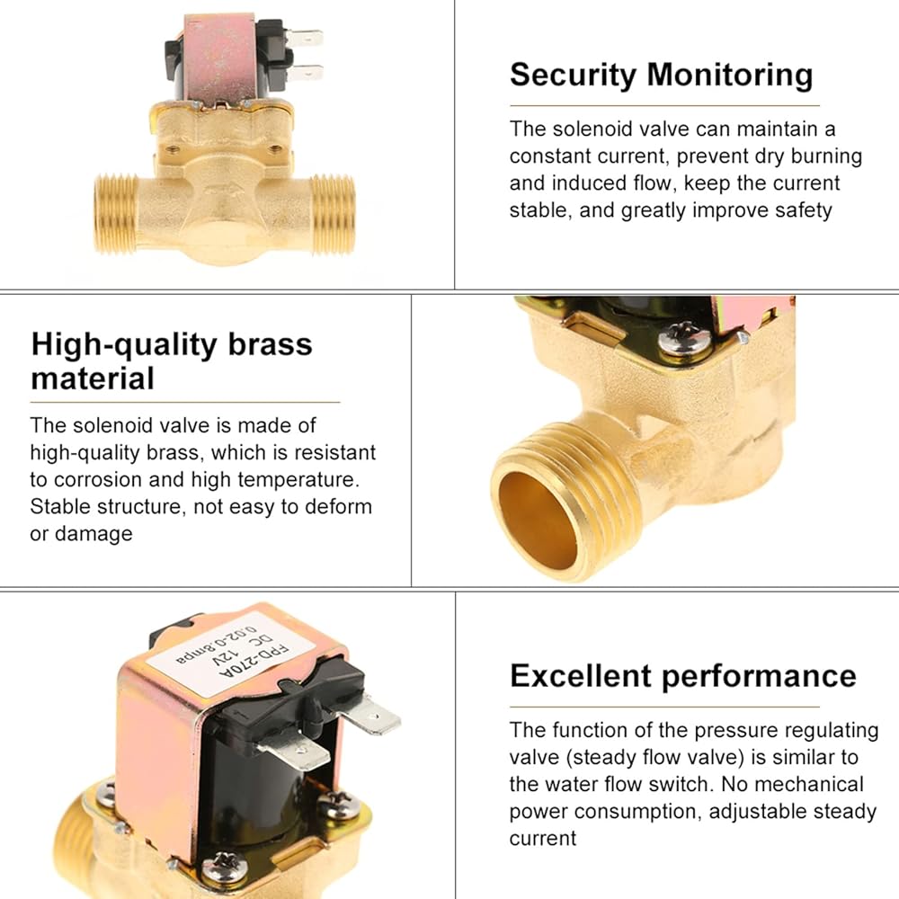 Estink 1/2 بوصة صمام الملف اللولبي الكهربائي النحاسي، 12 فولت تيار مستمر صمام التحكم في المياه مغلق عادة مع تنظيم الضغط ووظيفة ثابتة، لسخانات المياه ونوافير الشرب