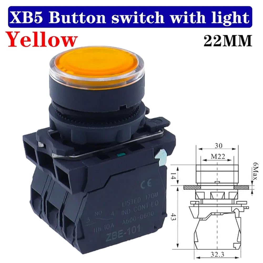 1pc Push button switch, XB5 luminous button momentary switch NC NC NO voltage 220V 24V 22mm